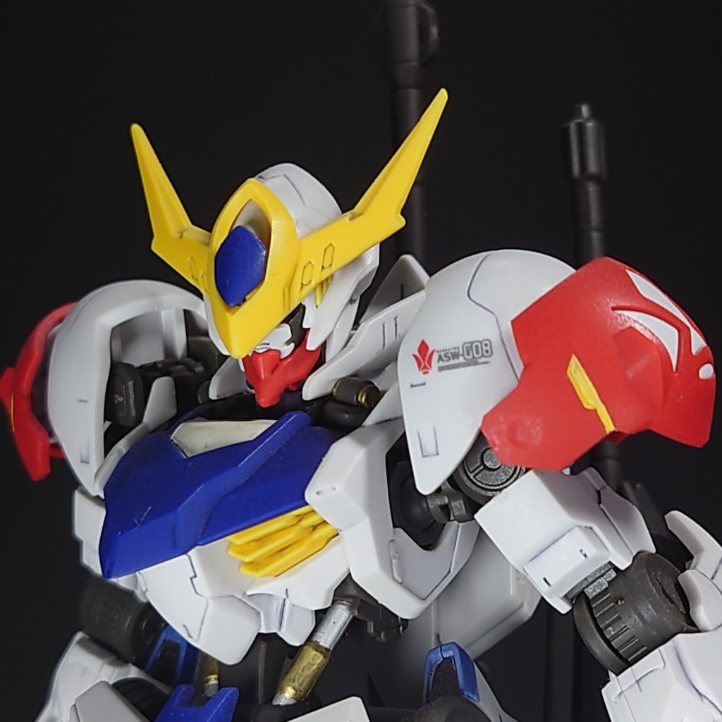 初めはガンダムらしくないフォルムに抵抗がありましたがアニメを見ていくうちに段々ハマっていき、いつの間にかこのキットを作成していました(笑)