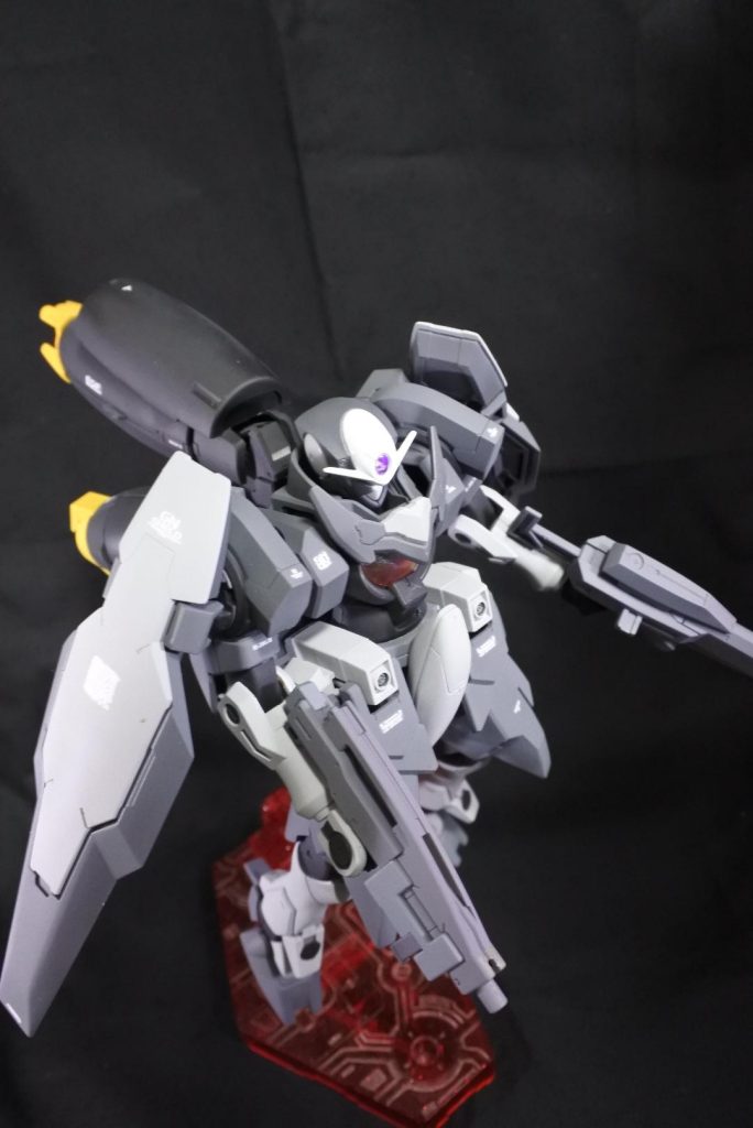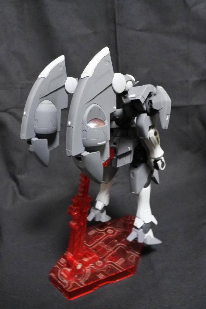 この追加装備のおかげで小回りがきき、高い機動性を確保している。(アヘッドのスラスターをそのまま流用していますが、それだけでは肩とスラスターが近すぎるのでジンクス・アヘッド系のGNドライブ基部のパーツを2つスペーサーとして増やしてます。)
