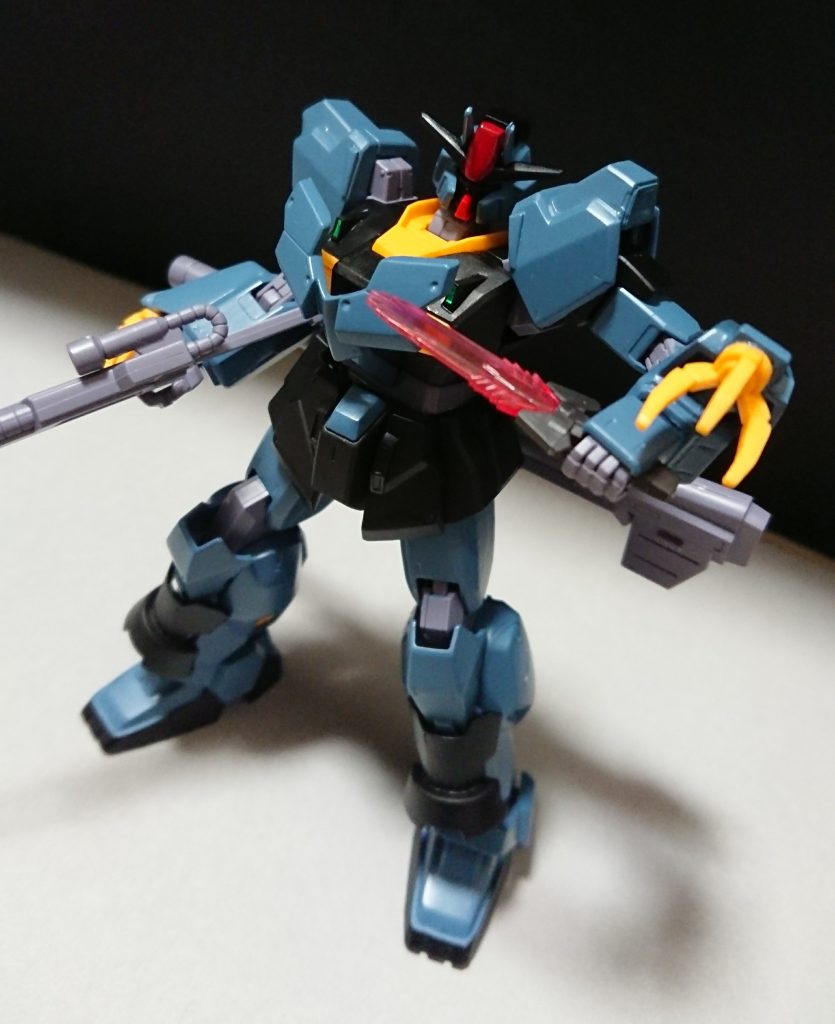 胸部と脚部にナノラミネートアーマーを装備している機体、両手に射撃兵装を持ちワイヤークローにビームダガーを掴ませる事で隙の無い独特な立ち回り方をする。