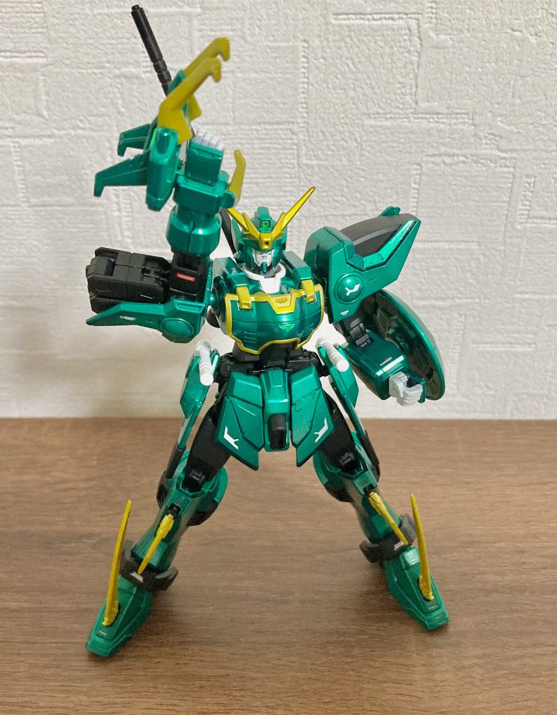 シェンロンガンダムをドラゴンの聖闘士をモチーフにカラーリングしました。腕の龍と盾みてたら、紫龍じゃないかと。