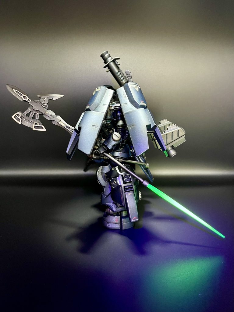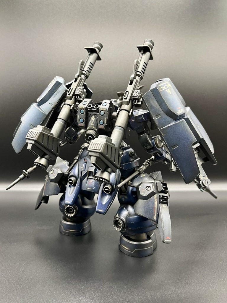 夜間決戦に備えたフルアーマー・タイプというオリ設定。スペックは、バズーカ(×2)、ファウスト(×2)、ビーム・サーベルを内蔵したハルバード、対物対応のビーム・ライフル、頭部暗視デバイス、シールド(×6)などで構成。