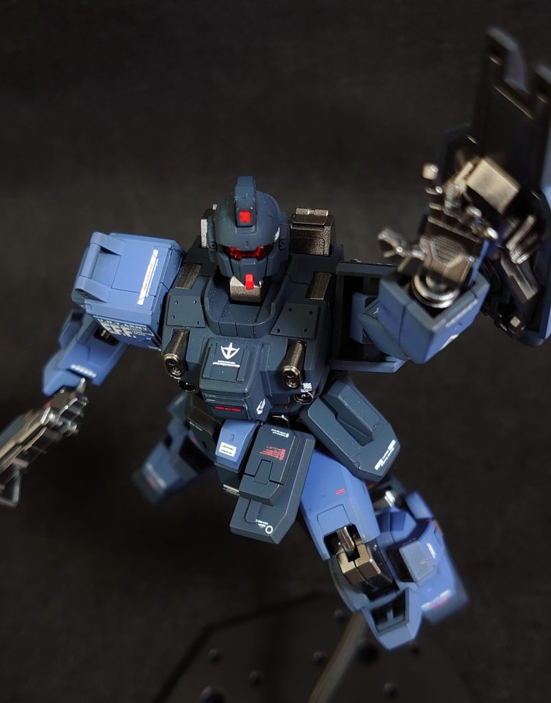 コメントありがとうございます!バイザー内のカメラ部分はガンダムマーカーメッキシルバーで塗装したからか、良い反射をしてくれています。