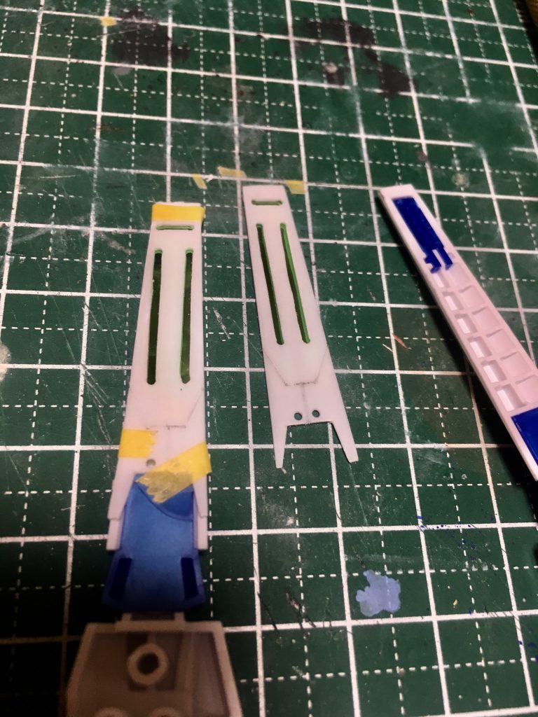 外装はそれぞれの基本色→白を混ぜて明度を上げた塗料で、若干キツめのグラデーションにしています。