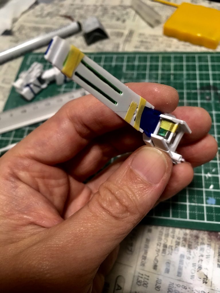 ツインアイとアームドアーマーBSの内側は、ラピーテープ貼り付けにて処理。