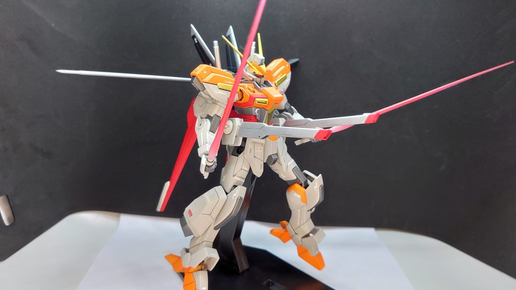 鹵獲したウィンダムにシルエットシステムを使用できるよう改修し、フォースシルエットと脚部のスラスターによる高速近接戦闘を得意とする……というイメージで作成しています。