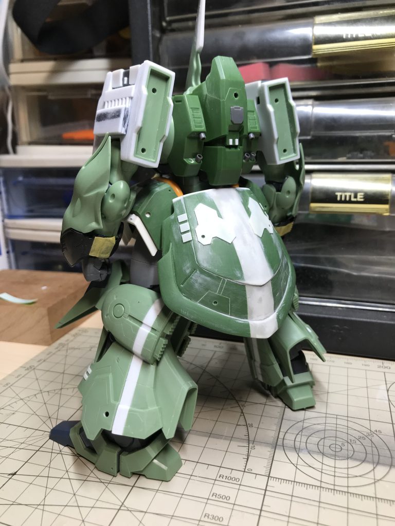 アバウト塗装レシピ:グリーン1 クレオス312 50% 同175 50% グリーン2 クレオス6 40% 同16 40% 同605 20% 同175同シアン少々 つま先・ヒザクレオス331 コブシクレオス60 白部分フィニッシャーズアイボリーホワイト オレンジクレオス58 80% 同173 20% フレームメカサフヘビー コート外装ガイアEx10 フレームガイアEx09