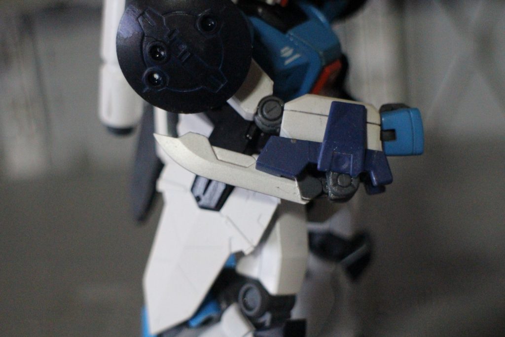 テイルスタビライザーは可動します。バックパック右側にはビームサーベルを装備。主に陸戦での格闘戦用になります。