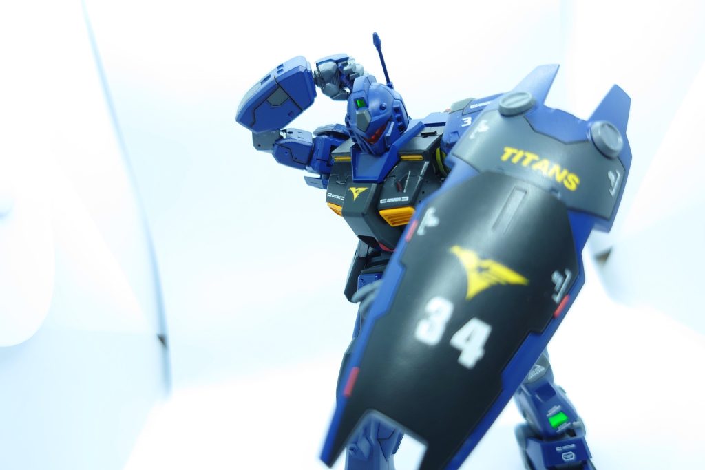 オリジナリティは少なめで、ジムクゥエルのデザインとティターンズカラーの元々のカッコ良さに助けられてますね笑