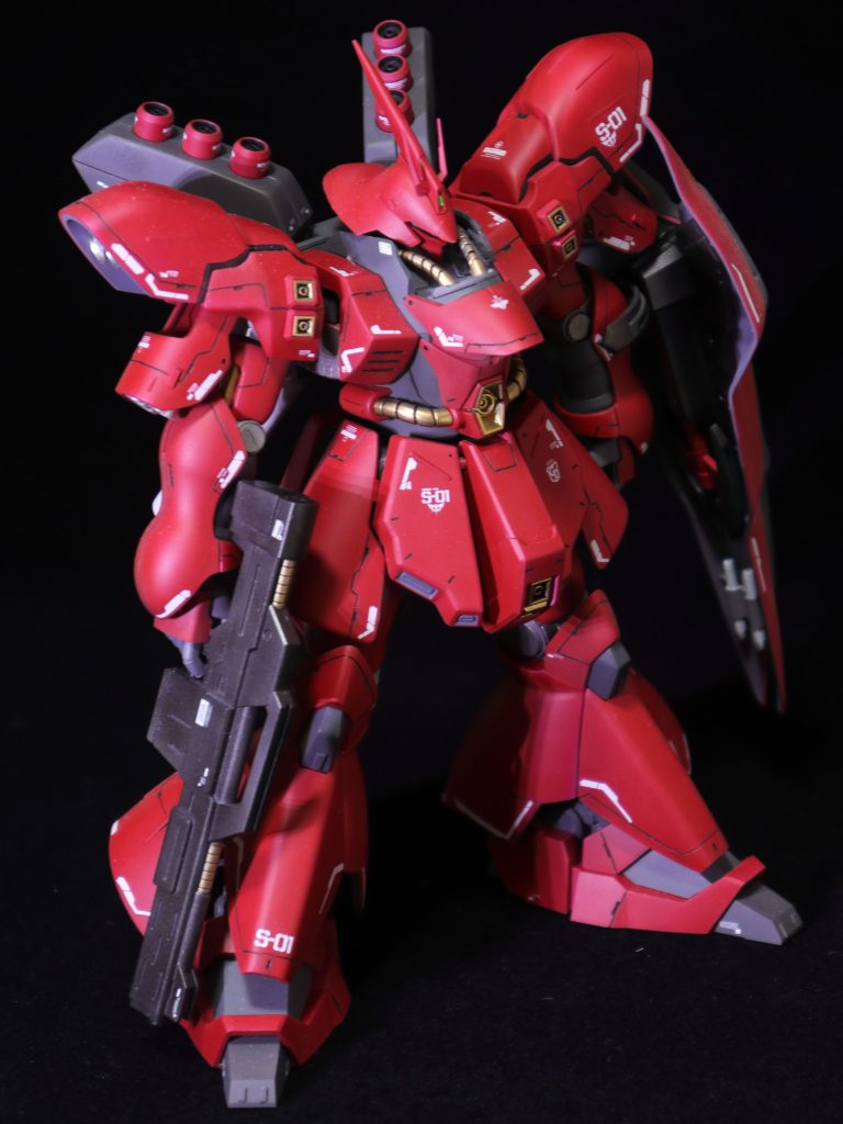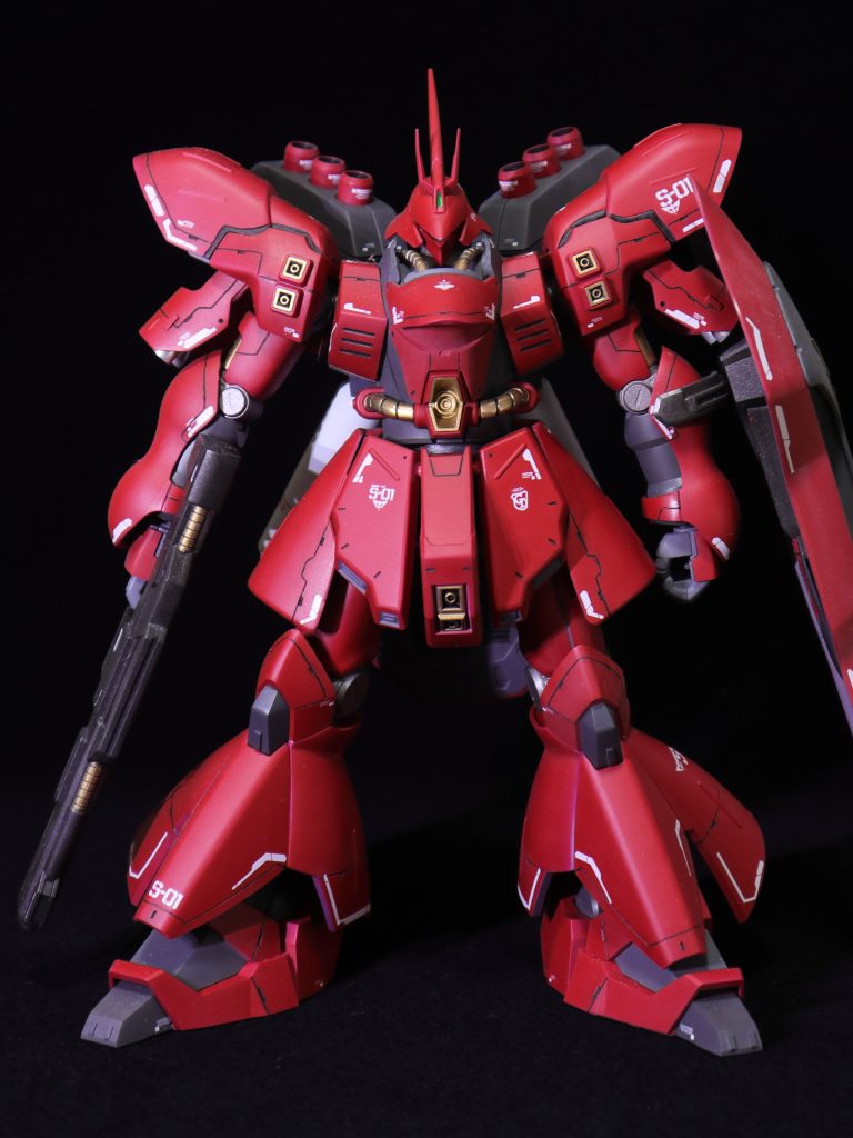 腰のサイドアーマーのバーニアを小さいものに変更し、腿を覆うようにしたのもボリュームを体幹に寄せることができてシナンジュのプロポーションの良いところを表現できたかなと思います。