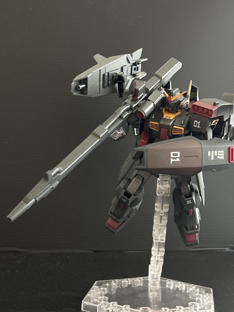 逆シャアよりも少し前くらいに特務隊で運用されていたイメージで作成した機体です。強奪されたのち、アナハイムに持って行かれたガンダムmk2 にジムIIIのミサイルを装備し、リガズィのバックパックを試験的に装備した機体になっています。