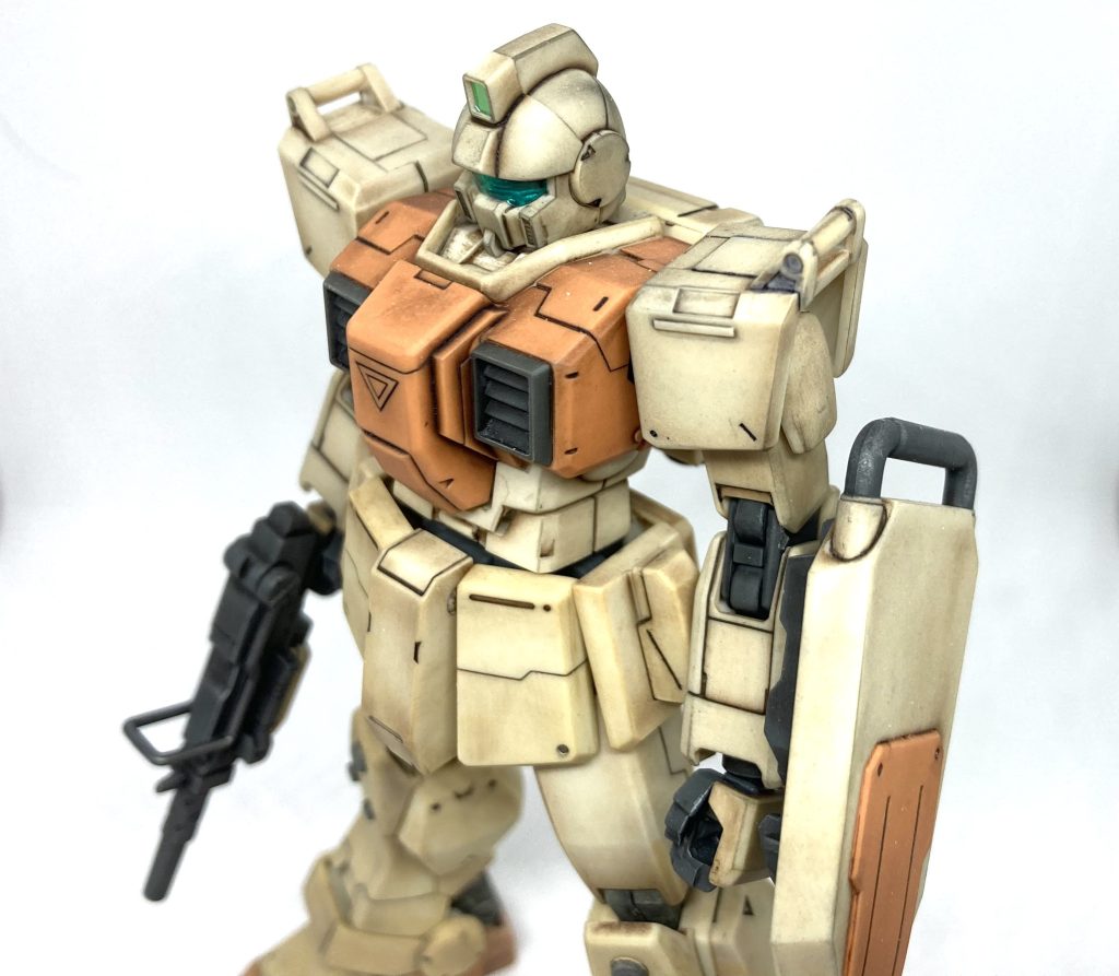 陸戦型ジム、歴戦感漂うウェザリングが素晴らしいですね😊成型色を上手く活かした陰影の付け方はとても参考になります。