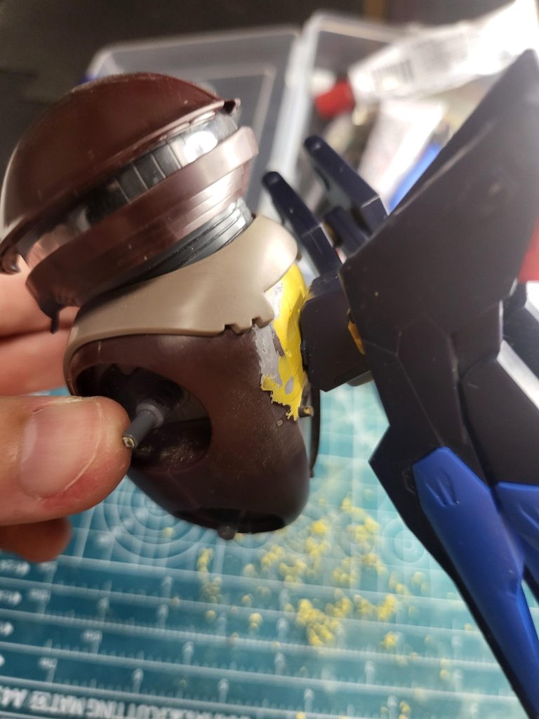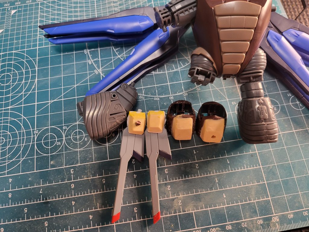 太もも部分にパテをもって3ミリ軸で接続してみました。