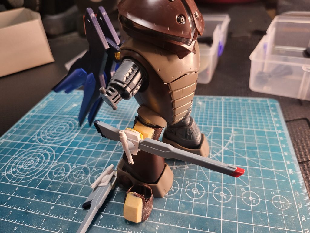 ガンプラ練習がてら組んでみたアッガイが想像以上に可愛かったので、自分の中で最も強いと思うMSの1つであるストフリ化して最強アッガイを作ってみたいと考えたことから作成してみました。