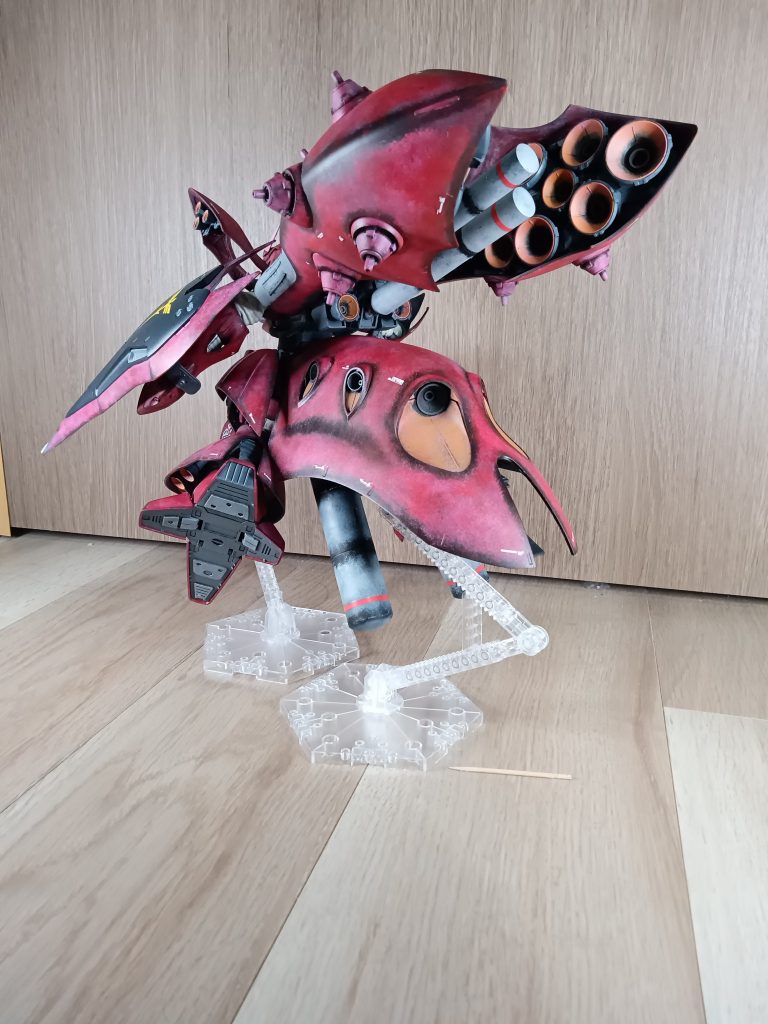 こちらもHi-νと同じく真っ黒にしてから、エッジの黒だけ残して赤を塗っています。曲面が多い機体なので、エッジ以外にも適当な感じで黒を残しています。