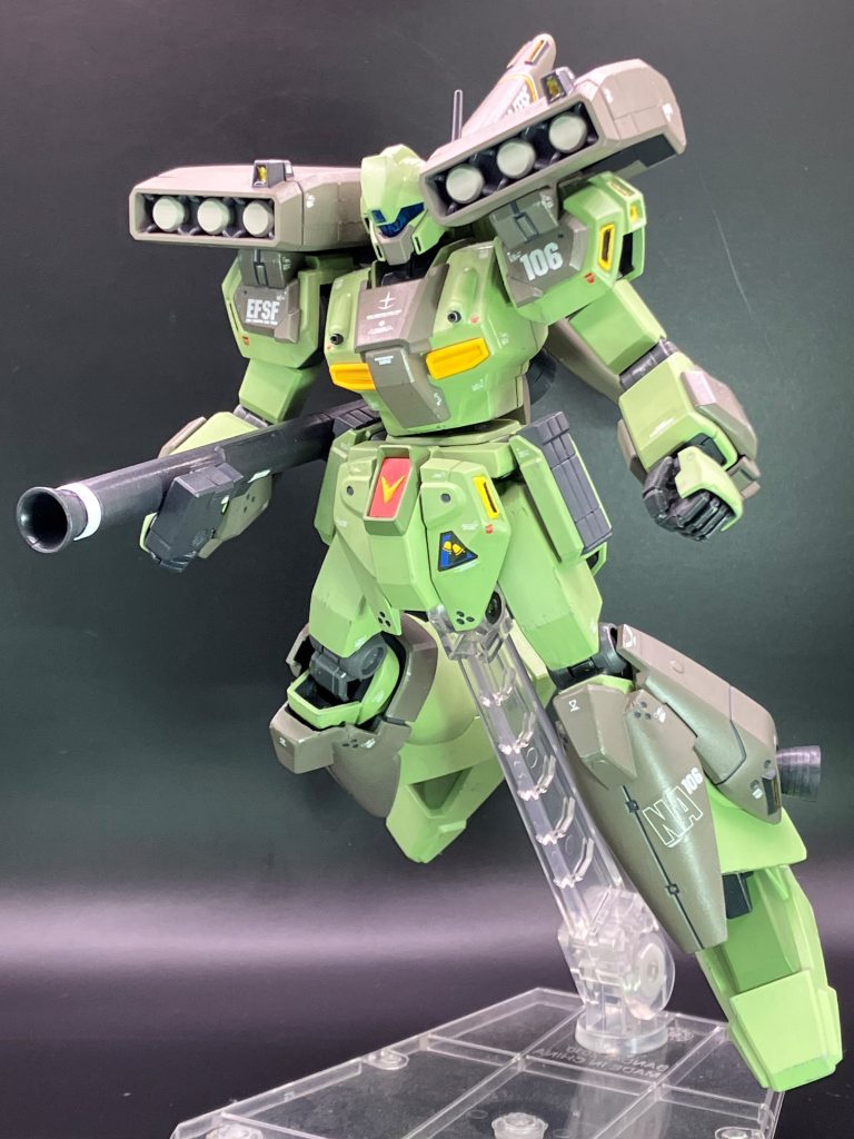 ネェルアーガマ内の破損したジェガンのパーツやスペアのパーツをかき集めて何とか稼働可能な機体を仕上げたという、小説版ガンダムユニコーンの最終決戦時の機体をイメージしました。(๑ ́ᄇ`๑)