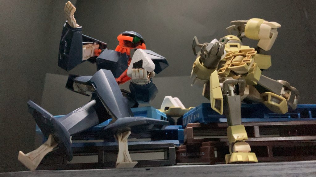 HGデミトレーナーチュチュ専用機と1/144モビルフラットでジオラマを作ってみました。題して