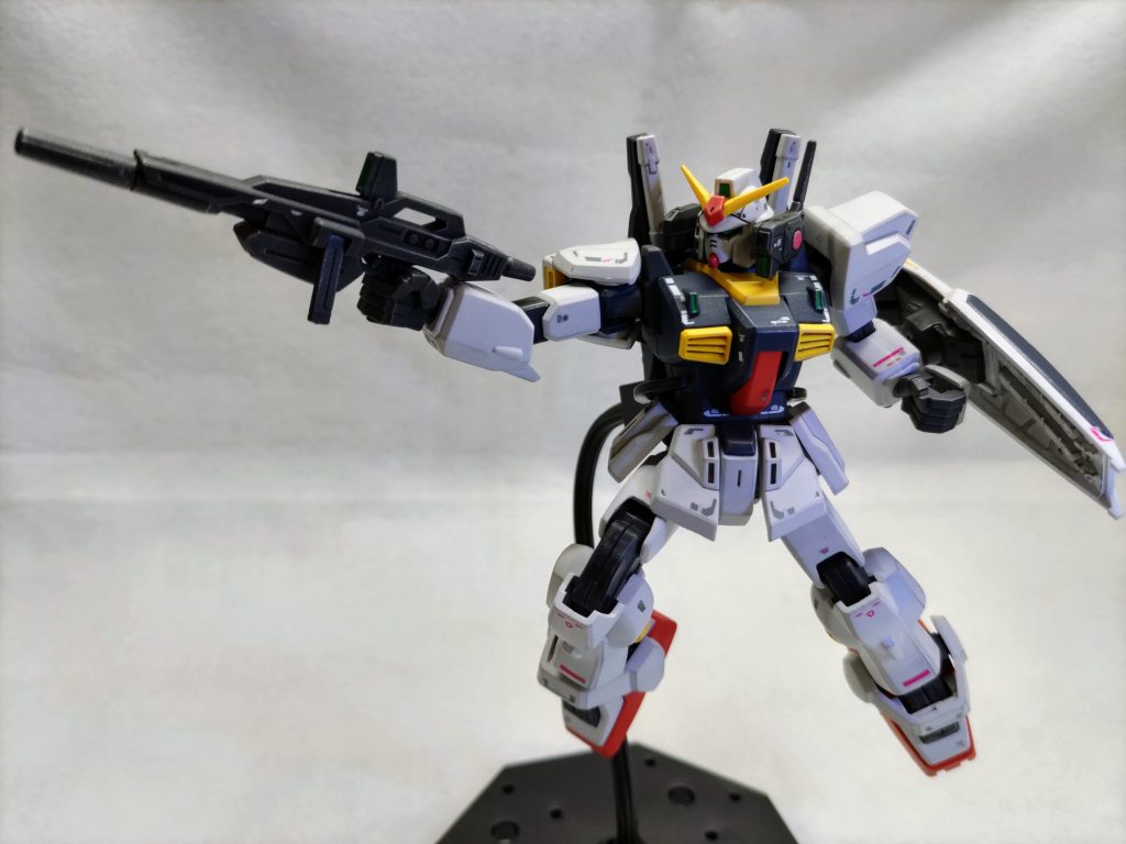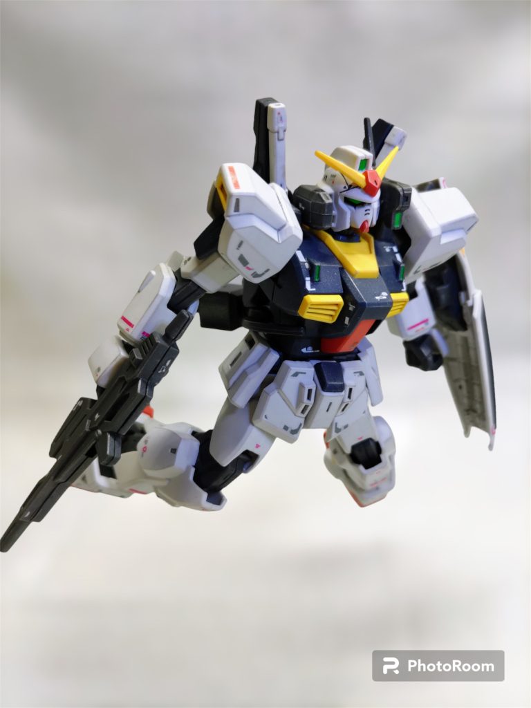 まず中の人マーク2。バルカンポッドの赤丸と胸部センサー、ビームライフルのセンサー部のグリーンをガンマカ塗装。肩アーマー、前腕、脚部全体合わせ目消し。関節部とトサカ、バックパックとビームライフルは段落ちモールド化。