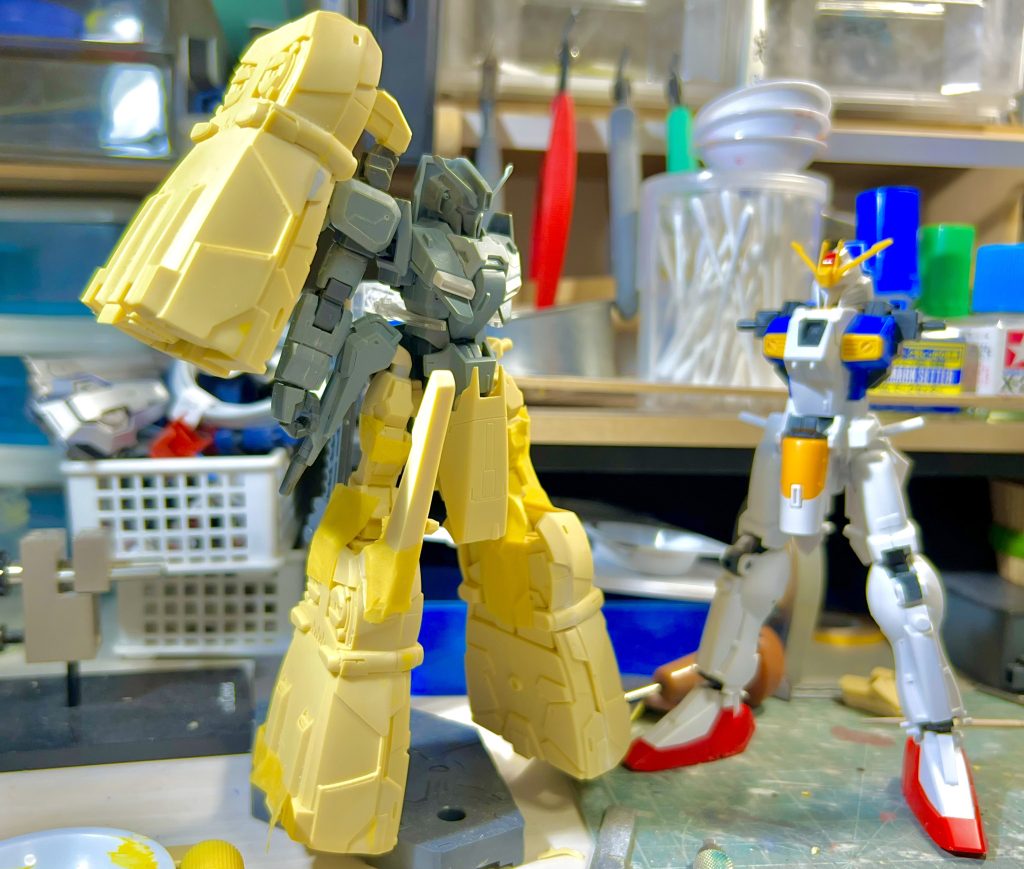 HG部分は胴体、背部、武器のみで後はすべてガレキキットです。