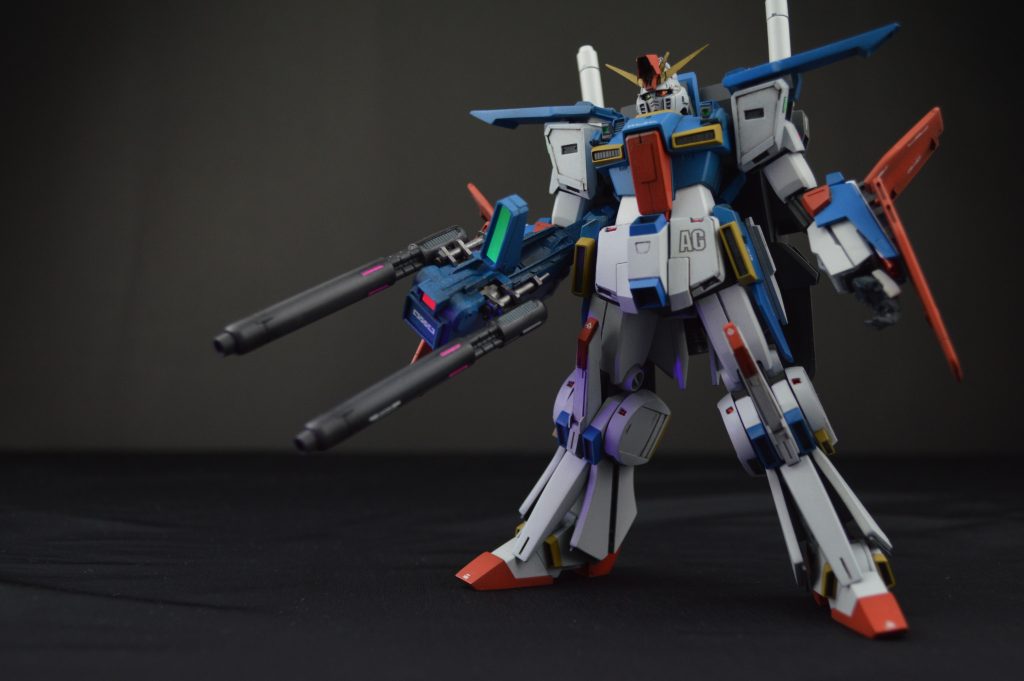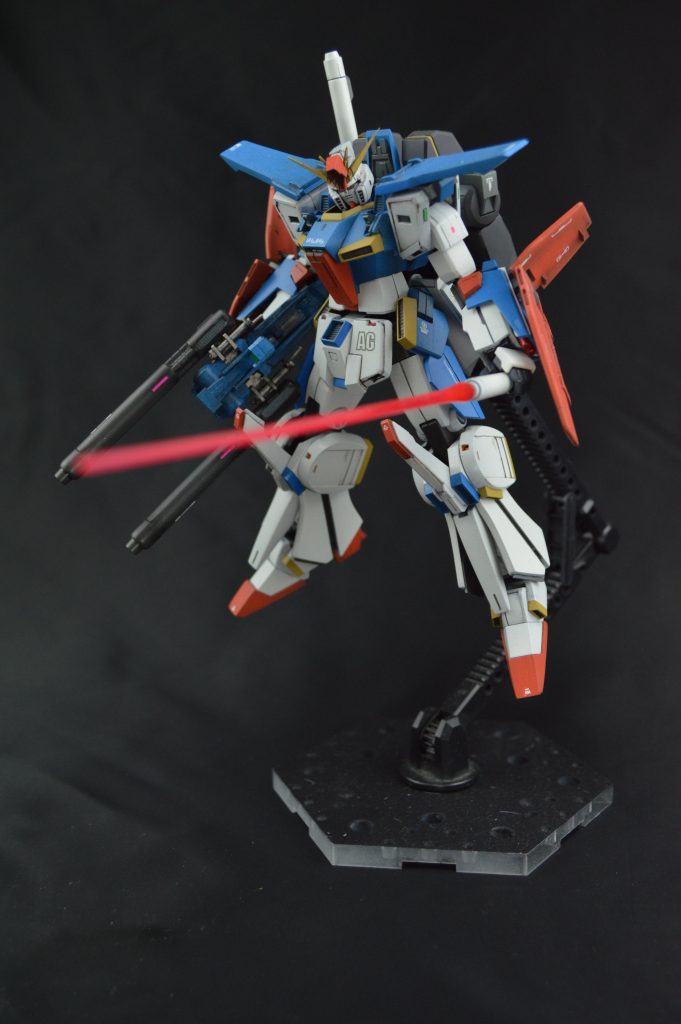 ライフルは幅詰しつつ短縮、バックパックの接続角度を変更して、脇に抱えて構えられるようにしました。変形はオミットしてディテールアップしています。