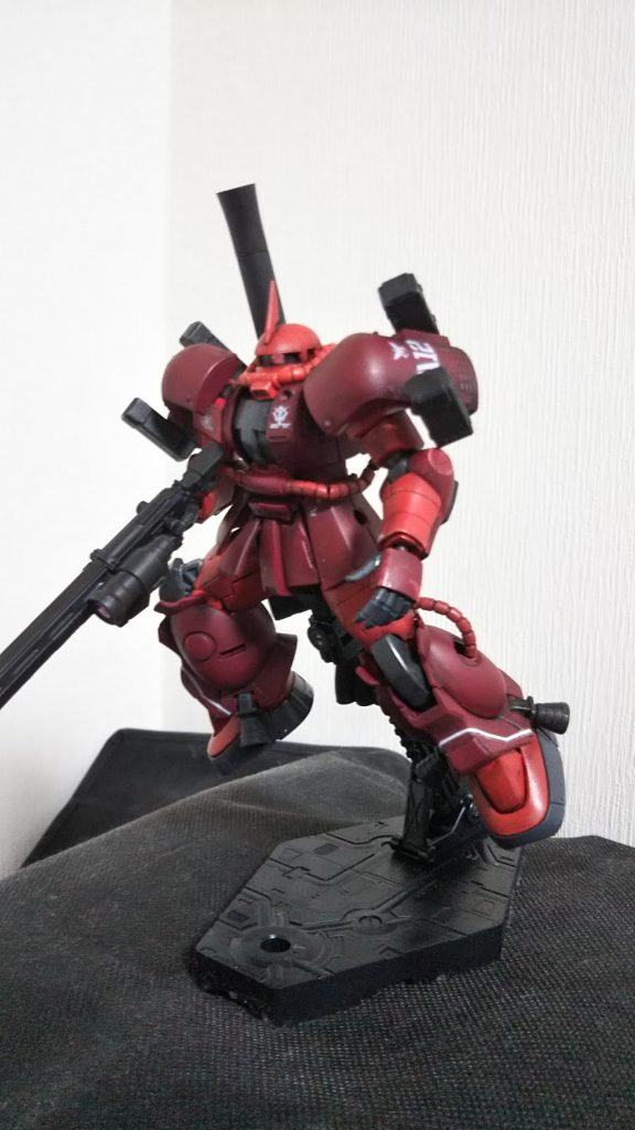 オリジンザクとザクアメイジングのミキシングです。足裾のアーマーをバーニアに変更。頭もプラバンで厳つく感じでモノアイもキラキラ仕様です。ファレホ筆塗り