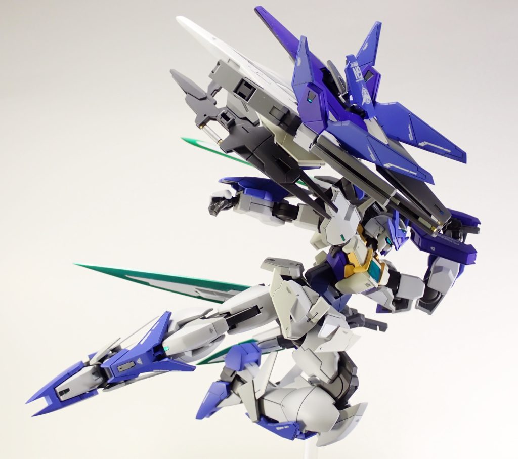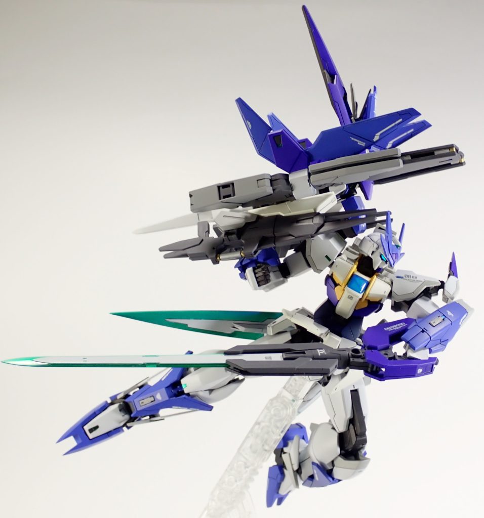右肩にはRGクアンタのGNシールド、左肩にはクアンタのサイドアーマー、腰にはセブンソードからGNソードⅡを装備、左手にはGNソードⅤを持たせました。それ以外はメビウスとなります。