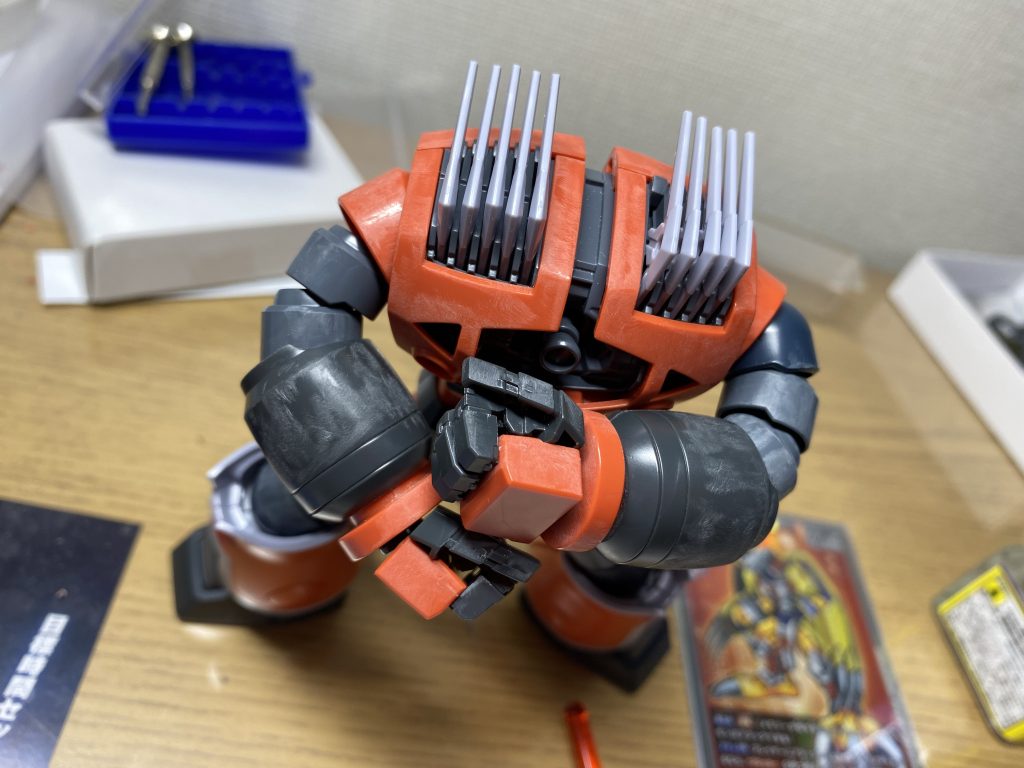 確か肩を増やして左腕側が増設、右腕側はキットままの状態で可動チェック時の写真