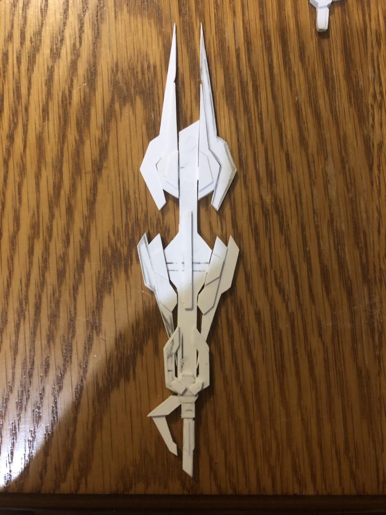 こちらも自作のシールドです。ユニコーンとインパルスのシールドを掛け合わせたようなデザインにしてみました。展開ギミックも、ちゃんと組みこみました。