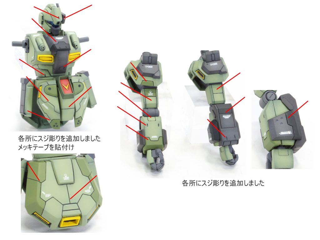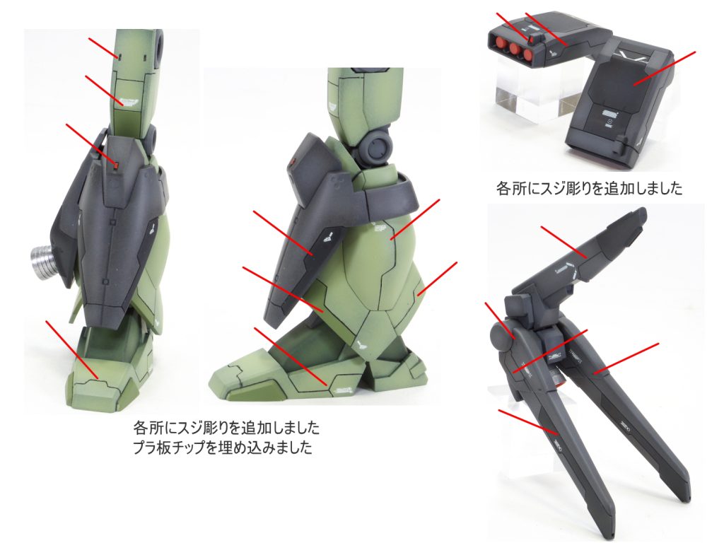 各所にスジボリにて情報量を追加して塗分け 太ももをパテにて幅…