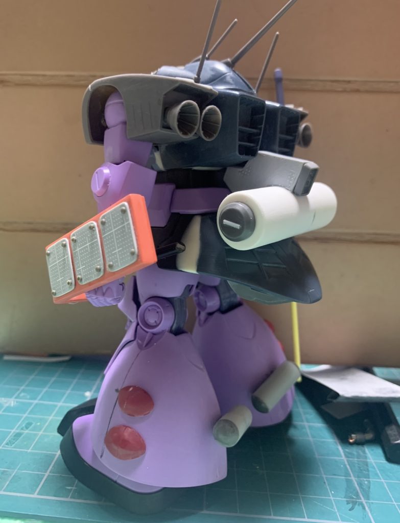製作お疲れ様です。HGUCドムを手にした誰もが一度はやってみたいドワッジ換装、でしょうか。背面タンク、ナイスアイディアです。