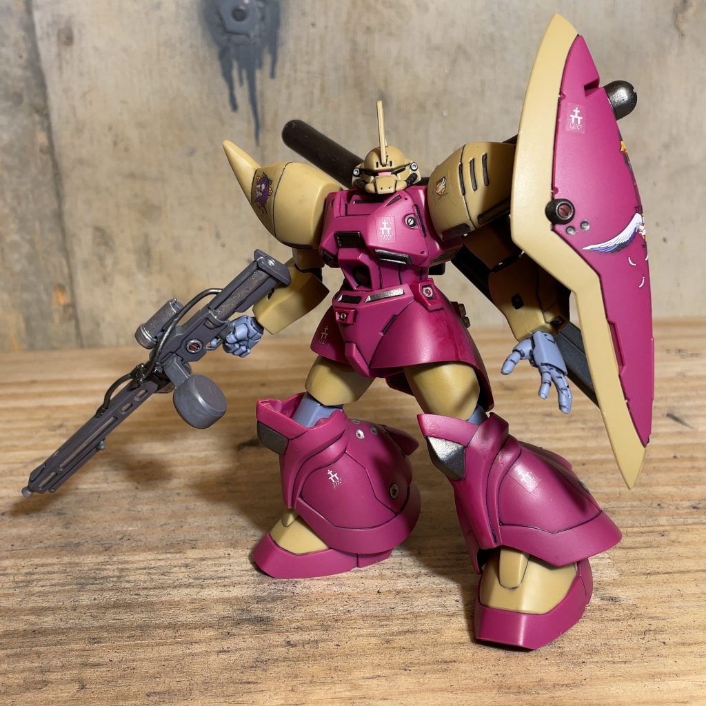 過去作品です。ゲルググ系を連続作成した時の第1弾。古いキットながら独特のカラーリンクで良いですね。筆塗り部分塗装、墨入れ、つや消しトップコート、汚しのお手軽仕上げです。
