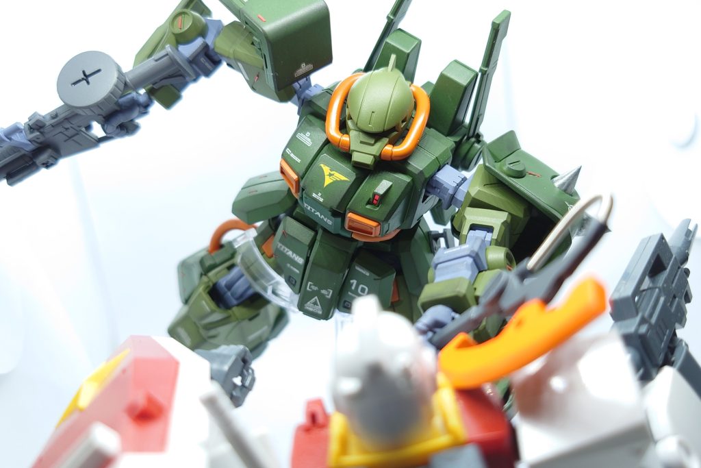 ホビーハイザックのキットを使用した作例をいくつか見ましたが、こちらの作例も、カッコいいですね!一緒に写ってるジム・クゥエルとの相性も良い感じですね!(zaku-kao5)