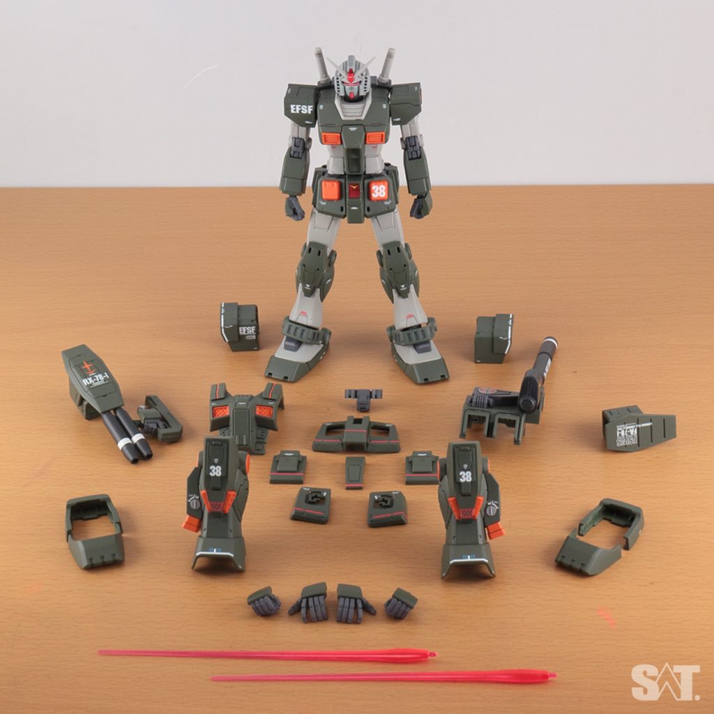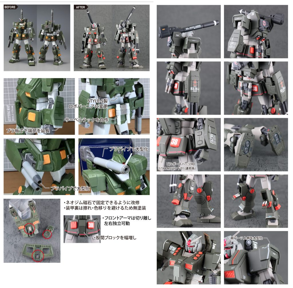 各モールドの彫り直し、磁石による装甲脱着、腰にビーム・サーベルラックを自作、砲身のボリュームアップを行い制作しました。