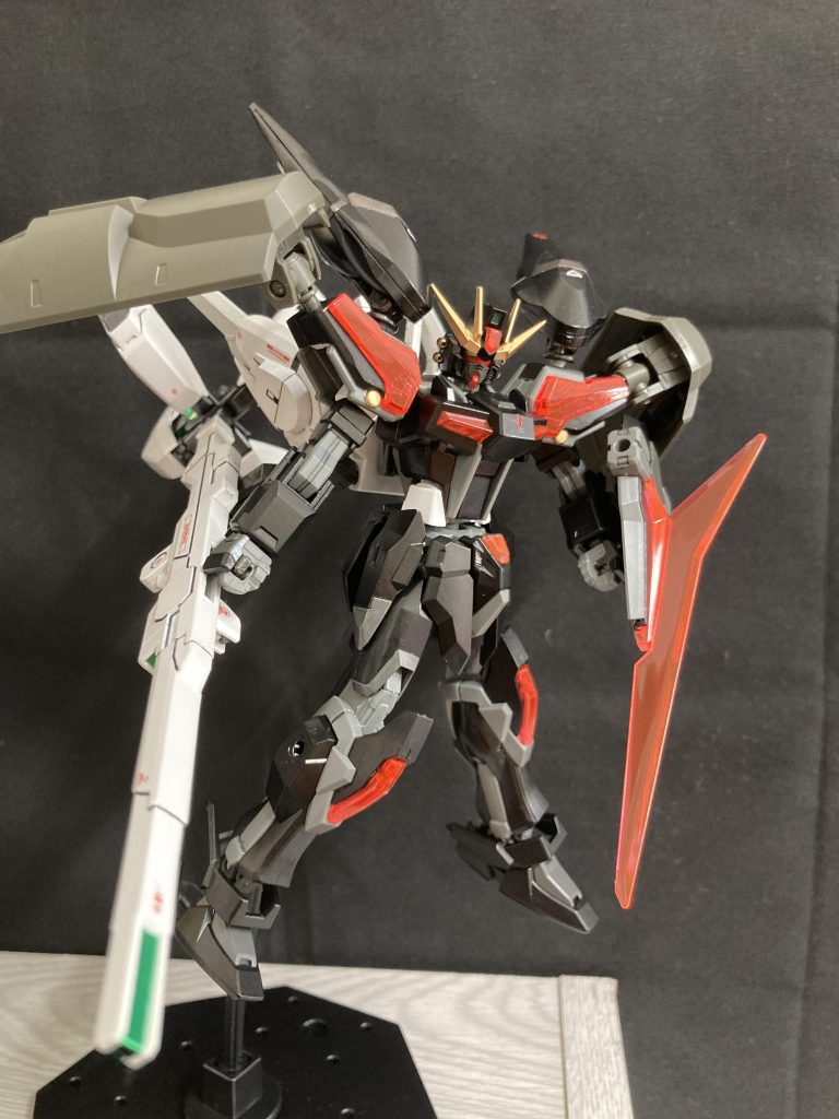 接続穴多い+ストライクの余剰パーツでライフルが付いてくるので価格に対しての満足感高いです。黒塗装するとクリアパーツが明るすぎたのでクリアレッドでワントーン明るさ落としました。