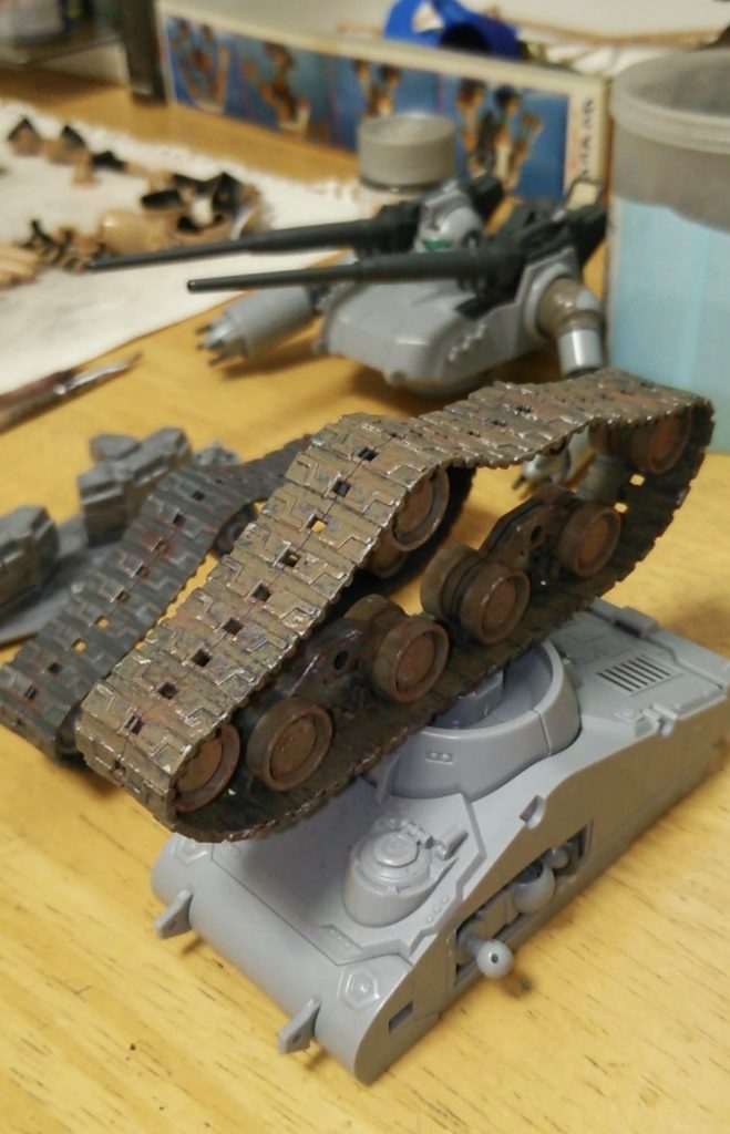 汚しと錆で誤魔化すのが好きなのですが、このガンタンクは履帯がプラスチックなので特に楽しく汚す事ができた機体でした。