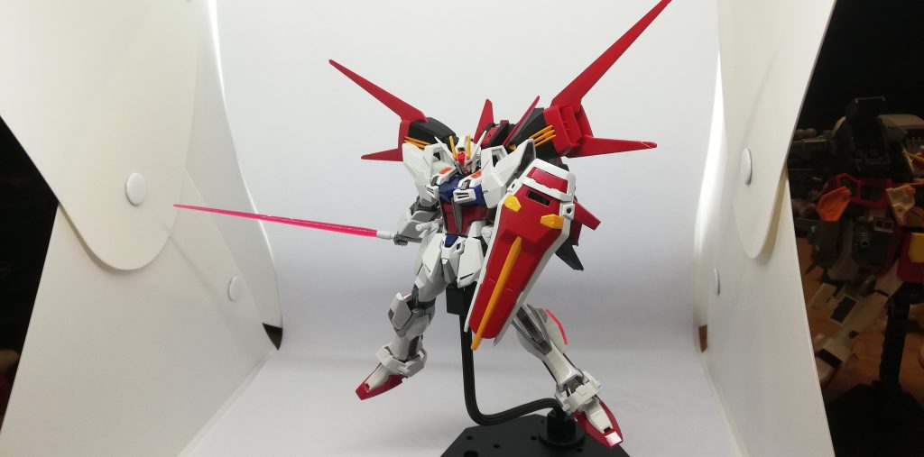制作番号6番目の機体です。エールストライクの機能、性能だけを特化させた発展機というコンセプトで作りました。いかに元デザインを踏襲させつつ、見た目の強化を図るのかが課題でしたが、安直にスタービルドストライクとアメフリのパーツの相性が良かったのでそこはクリアできたかなと。バックパックのオリジナリティを出したくてmsgのジョイントを多様し始めたのもこの頃からです。
