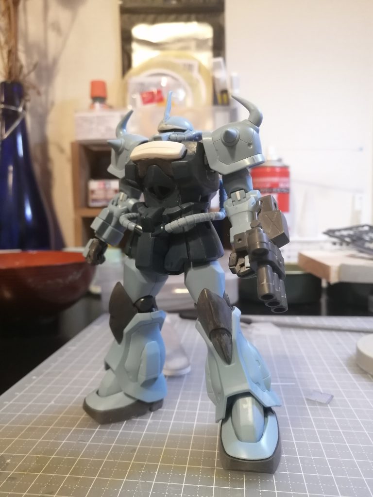 コメント失礼します。丁寧なスジボリ、カラーリングと改造が相まって、正に漢と書いてグフと読む!ですね!
