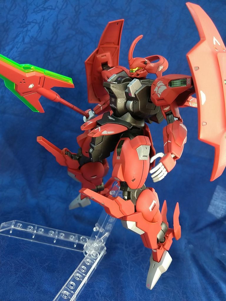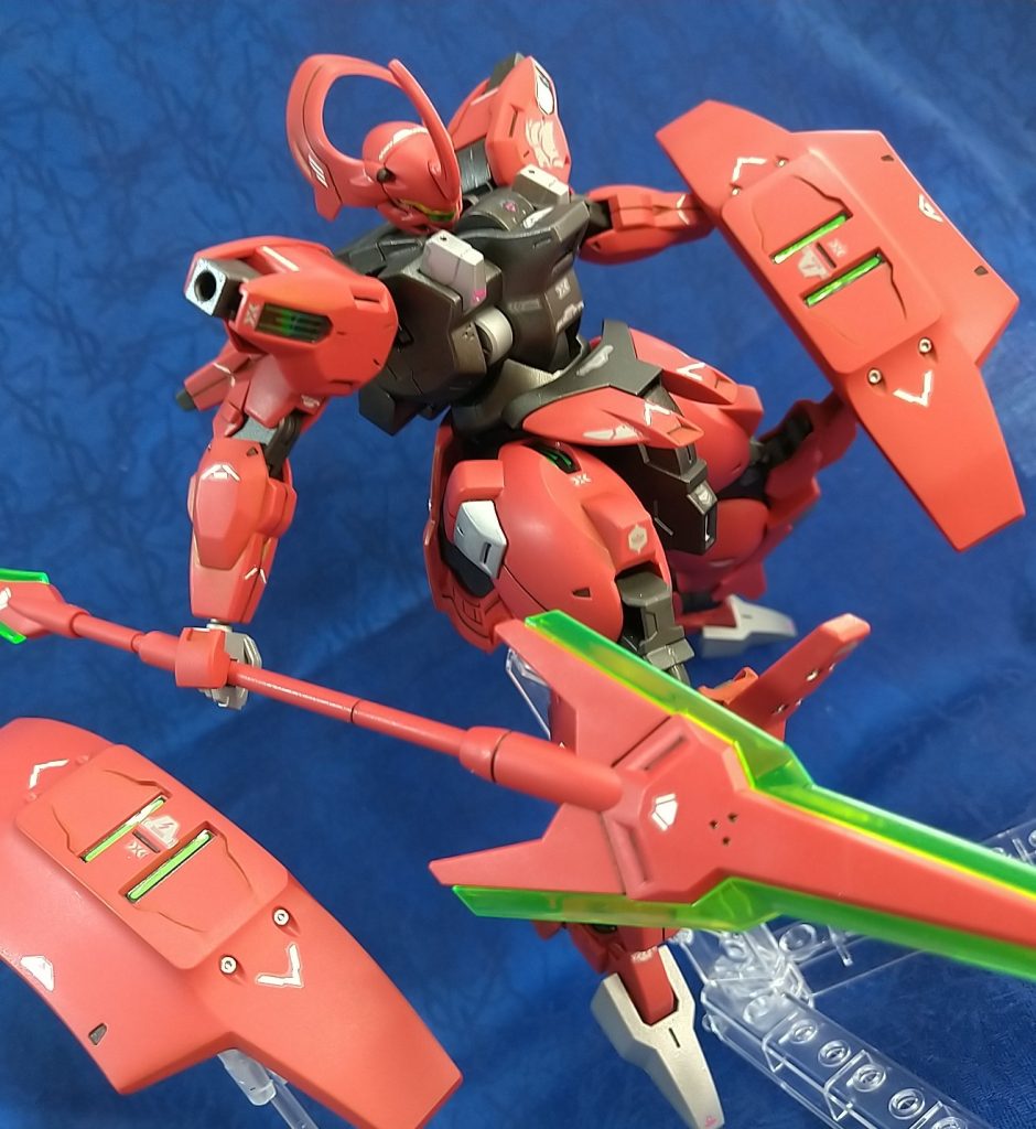 外装の赤は成形色のままで、胴体を部分塗装。黒いパーツはガンダムマーカーエアブラシを使って、メタリックブラックで塗装。白いパーツはメタリックシルバーで塗装。その後、スミ入れ、デカール貼付、つや消しトップコートで仕上げました。