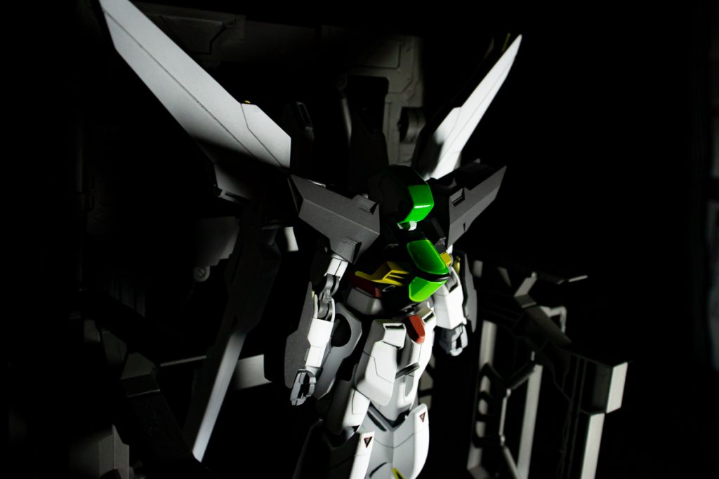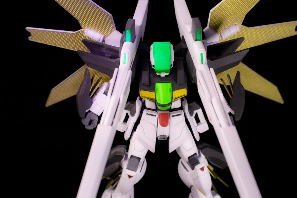 作中でビットモビルスーツの頭部発光色が統一されていないので、本機に関しては胸部からのカラーリングを活かしてエメラルドグリーンを使用。