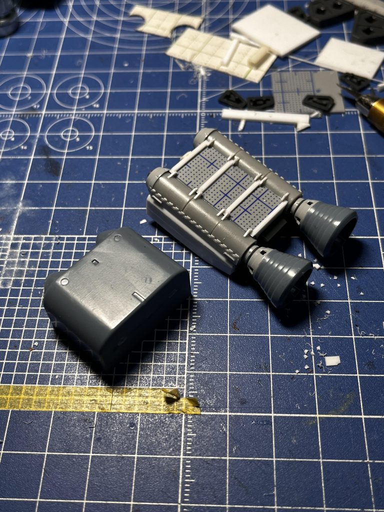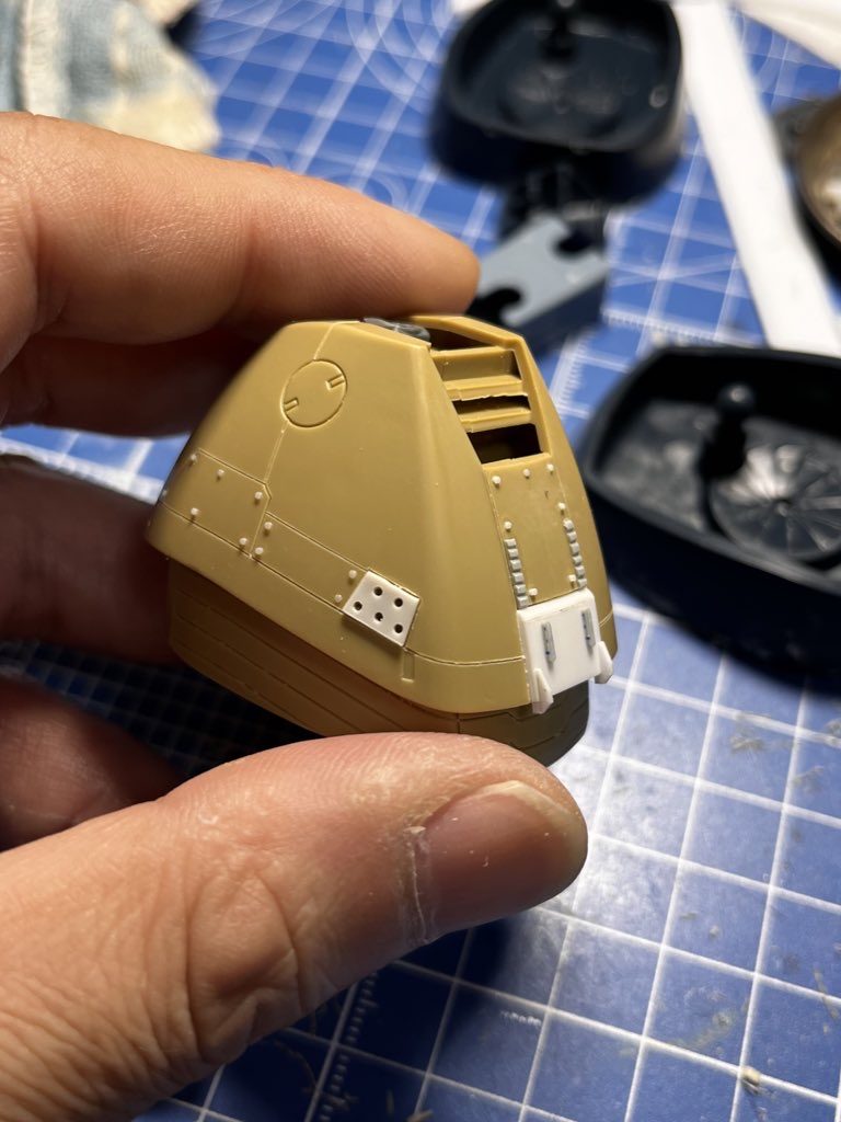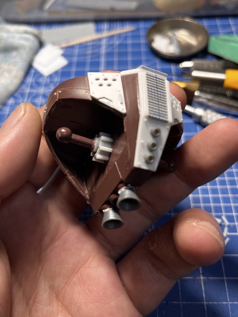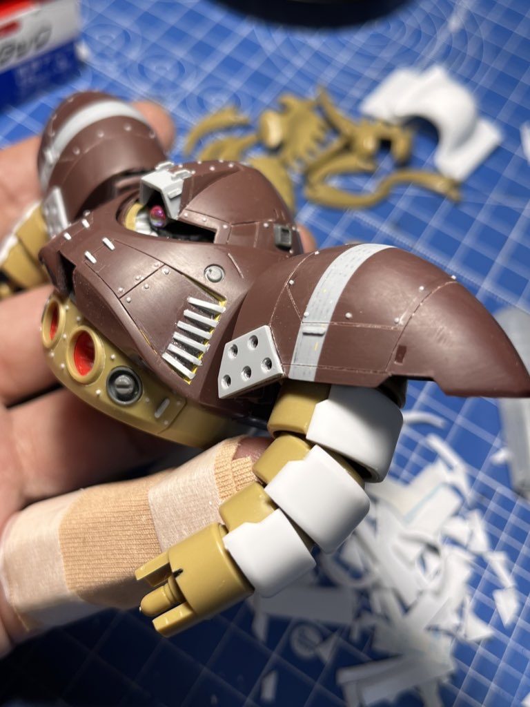 胸部→首がめり定番的な改造をしてます、フィンを追加したくて大幅に加工しています、リベット多めに打って現地改修感が出るように工夫しています。