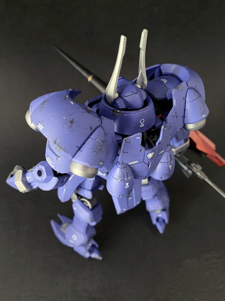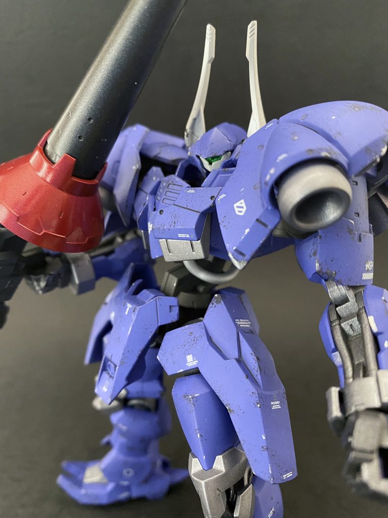 本体は装甲部をブルーバイオレットでフレーム等はガンメタルで塗装しました。多少チッピングを施し使い込んだ感じを、武器は新品っぽく。