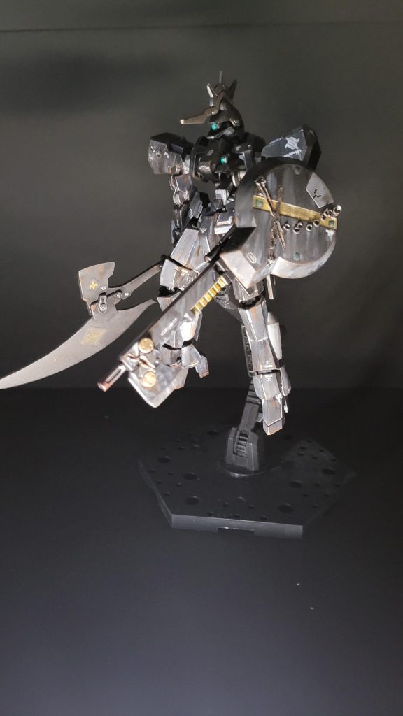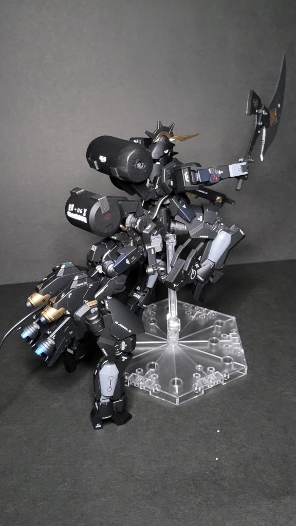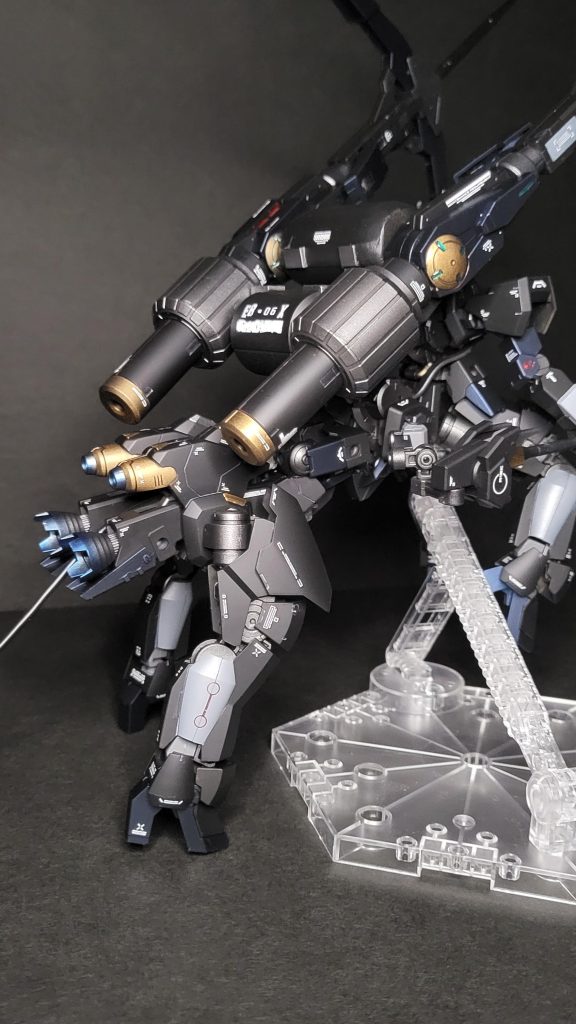 武装の構成上、超長距離狙撃や強襲ミッションの適正が高いがダインスレイヴをパージするとダインスレイヴに食われていたエネルギーリソースが全て駆動力に回せるので、一転 足を止めての格闘戦が強くなる。