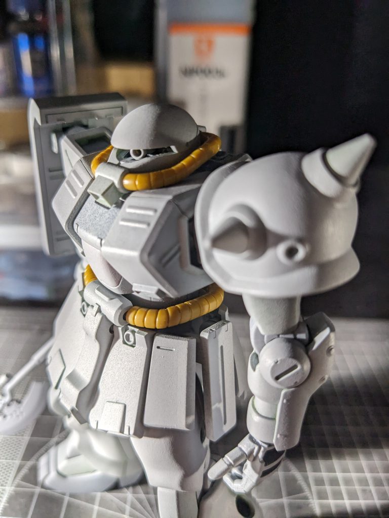 コメント失礼します。改修の効果的ですね、どっしりしたあのザク改になっていて、とてもカッコいいと思います。ちなみに頭部はどのような改修をされたのか、良ければご教示ください。