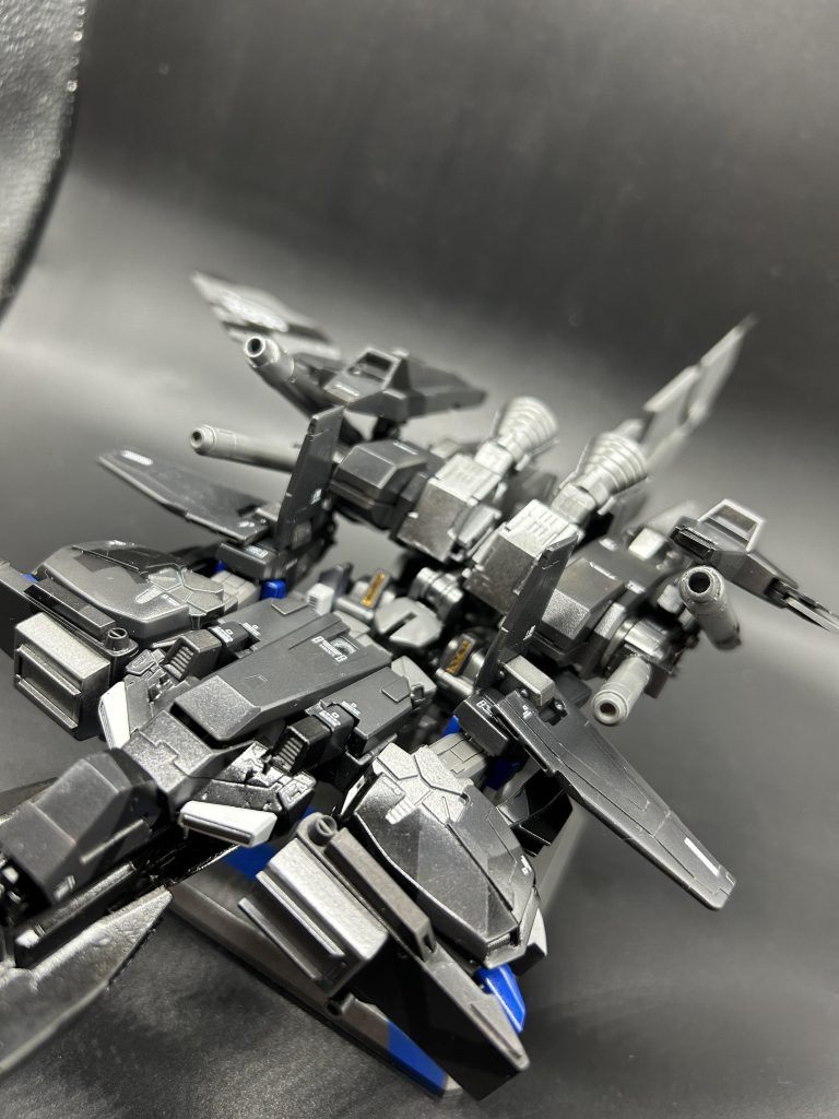 HGUC ZZガンダムをオリジナル機として作成しました。ビルド系として作りましたが、宇宙世紀の機体として見ても違和感ないぐらいになったと思います。一応差し替え無しで変形させれますが破損が怖いので3つに分割、ヘルメットを取ってから変形させています。