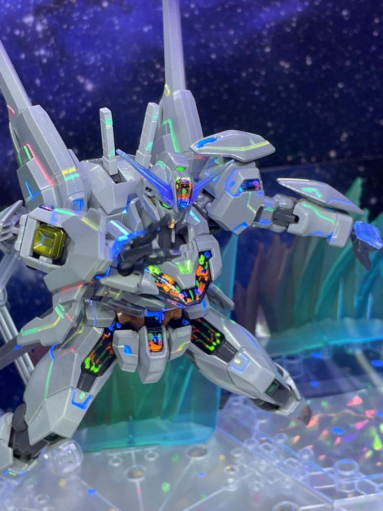 全身に蛍光塗料で墨入れ、外装はプリズムブルーブラックにメタリックパープルを調色
