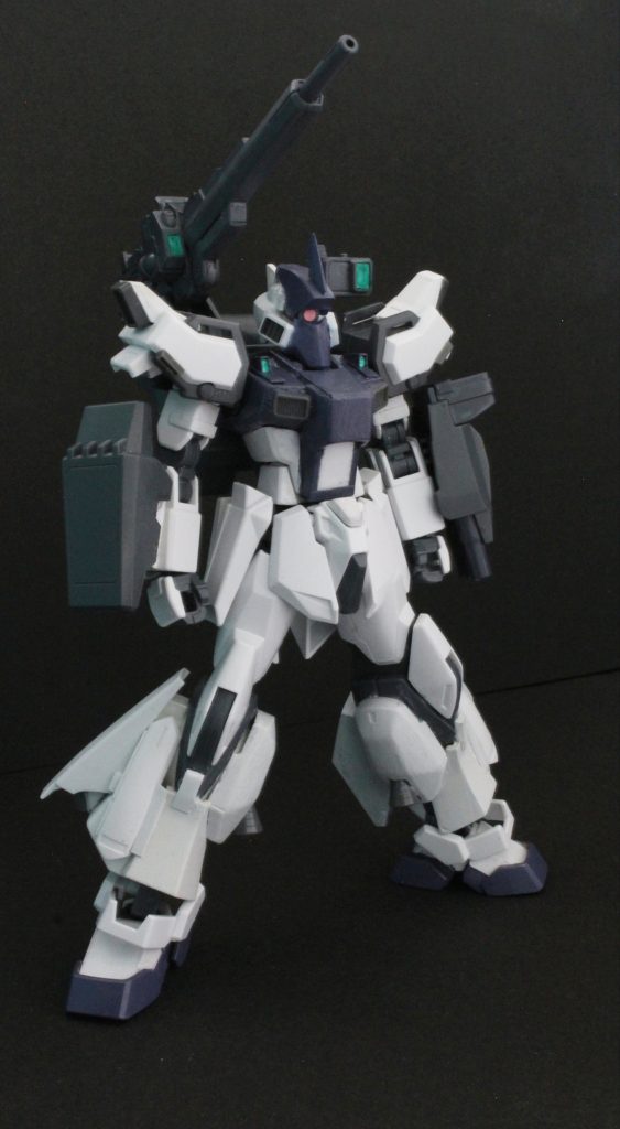 ゲルググ・キャノンを参考にしている装備もあり、遠距離戦に対応できるようにキャノン部のバレル改修やセンサー強化を行い、狙撃戦に対応した。