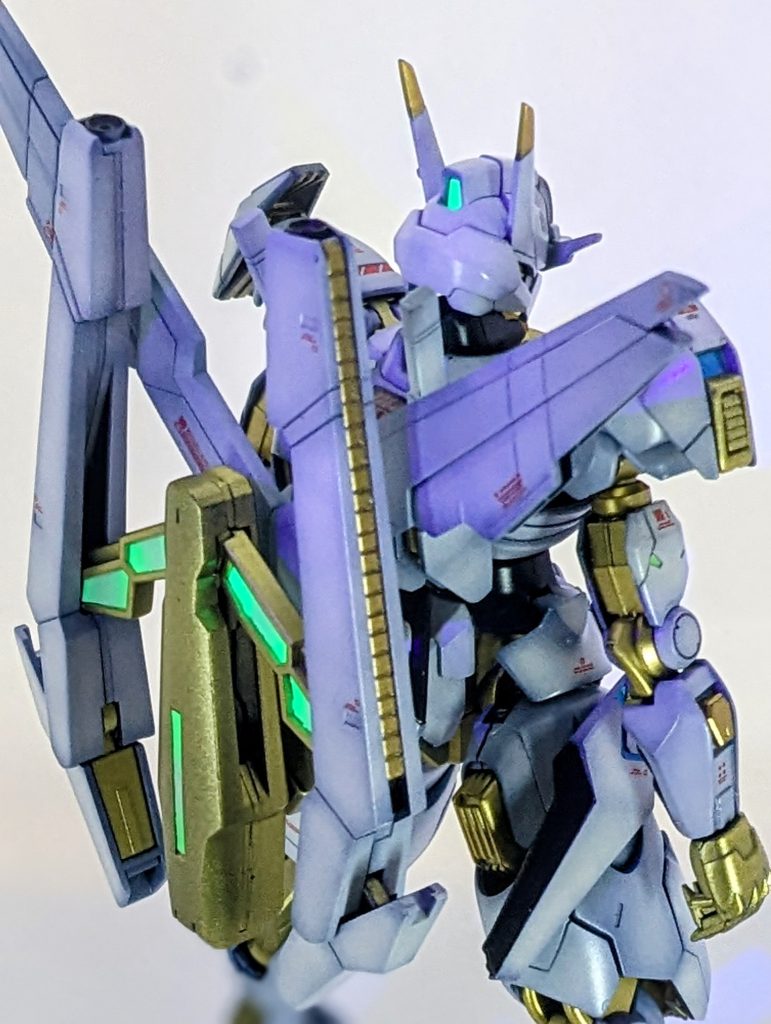 塗装はエルガイムと丸っきり同じ塗料で塗ってます(笑)顔は特にマスク部分が小さくできればHMっぽくなるかと思ってやってみましたが、以外とガンダム感が残っていい塩梅になったかと🤔同時期に@244さんがキャリバーン作ってくれたのでモチベーションが保てました😁グラデーション塗装はまだまだ課題が多くて難しいですが、いつかは物にしたいですね♪