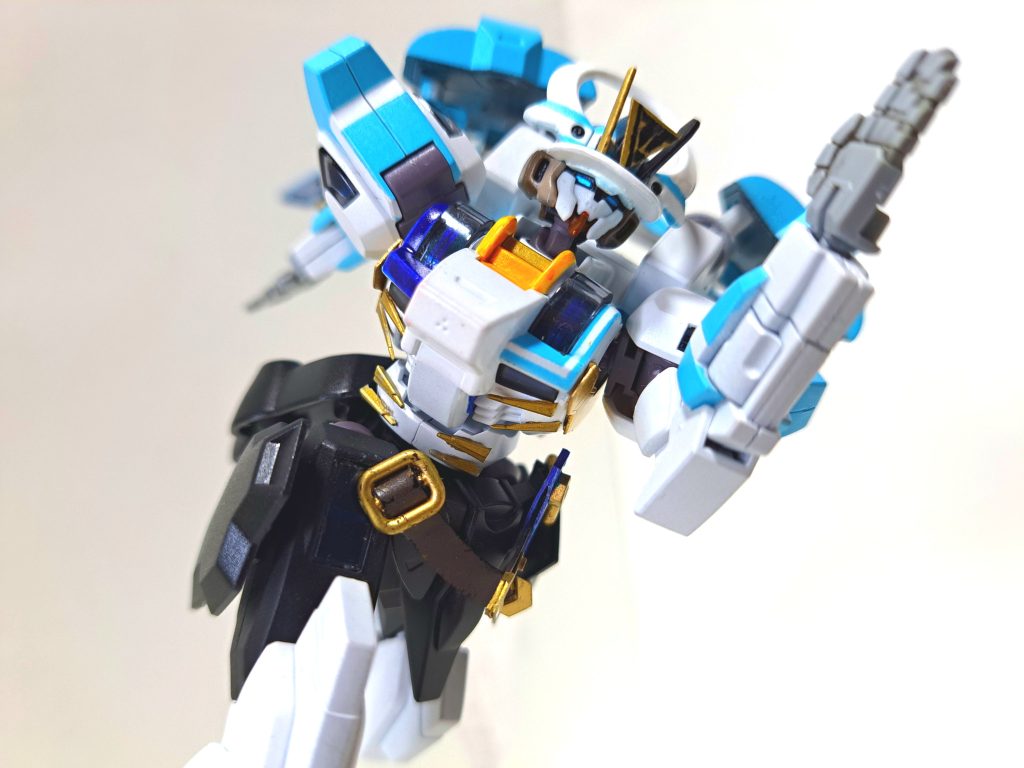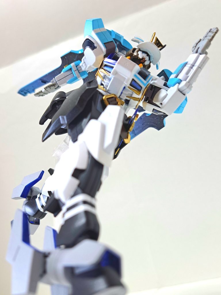 ウマ娘プリティーダービーのシュヴァルグラン(勝負服ver)をイメージした塗装と改造を、HGガンダムシュバルゼッテに施した作品です。