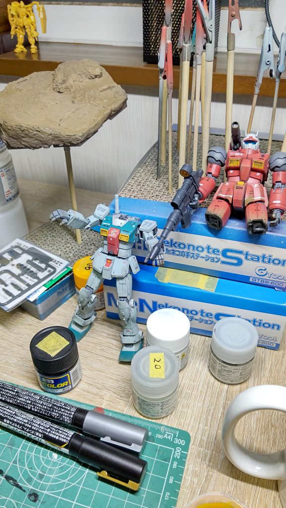 当初は劇中通りのポーズにしようとしましたが不安定&干渉して塗膜が剥げるので断念