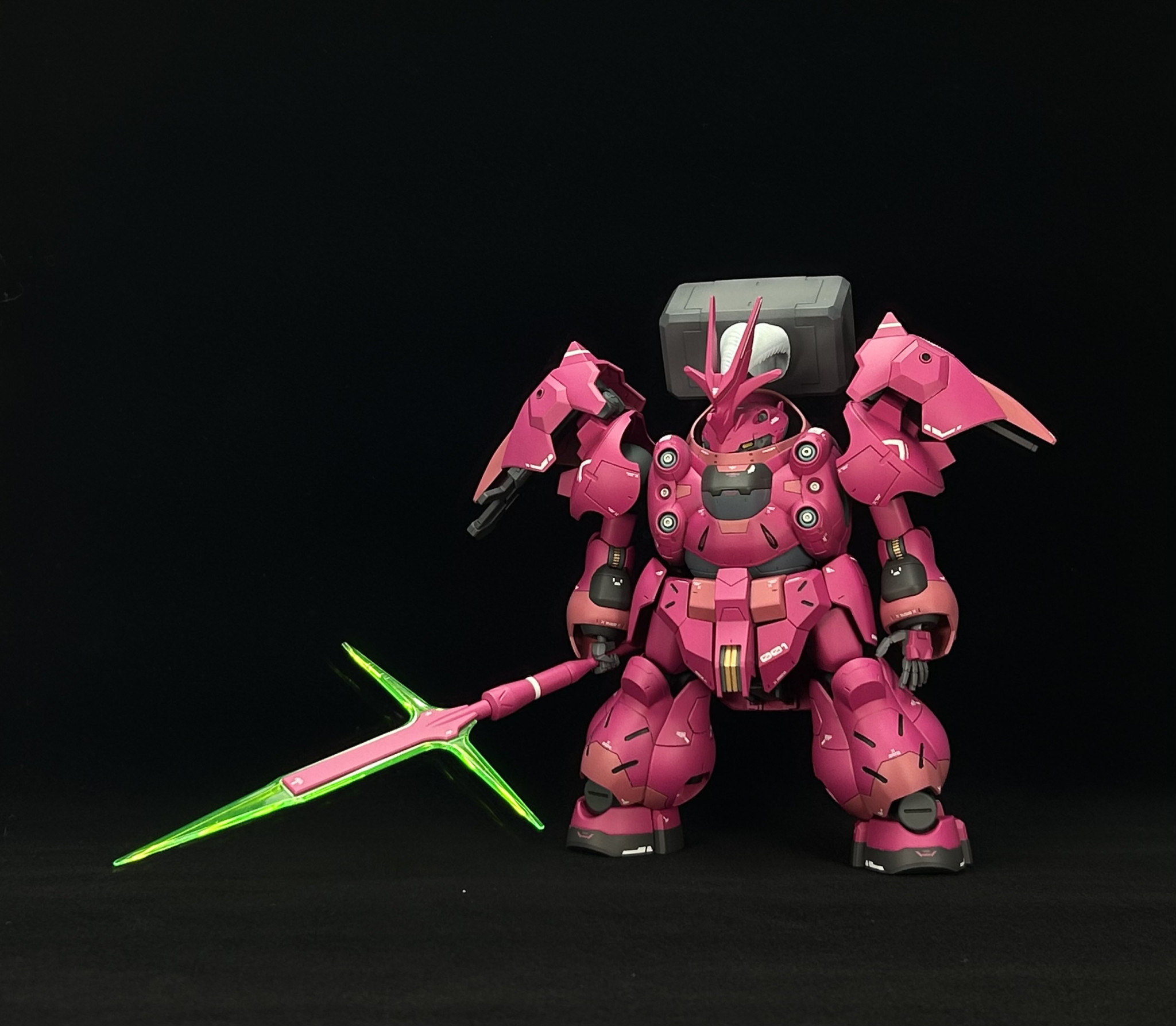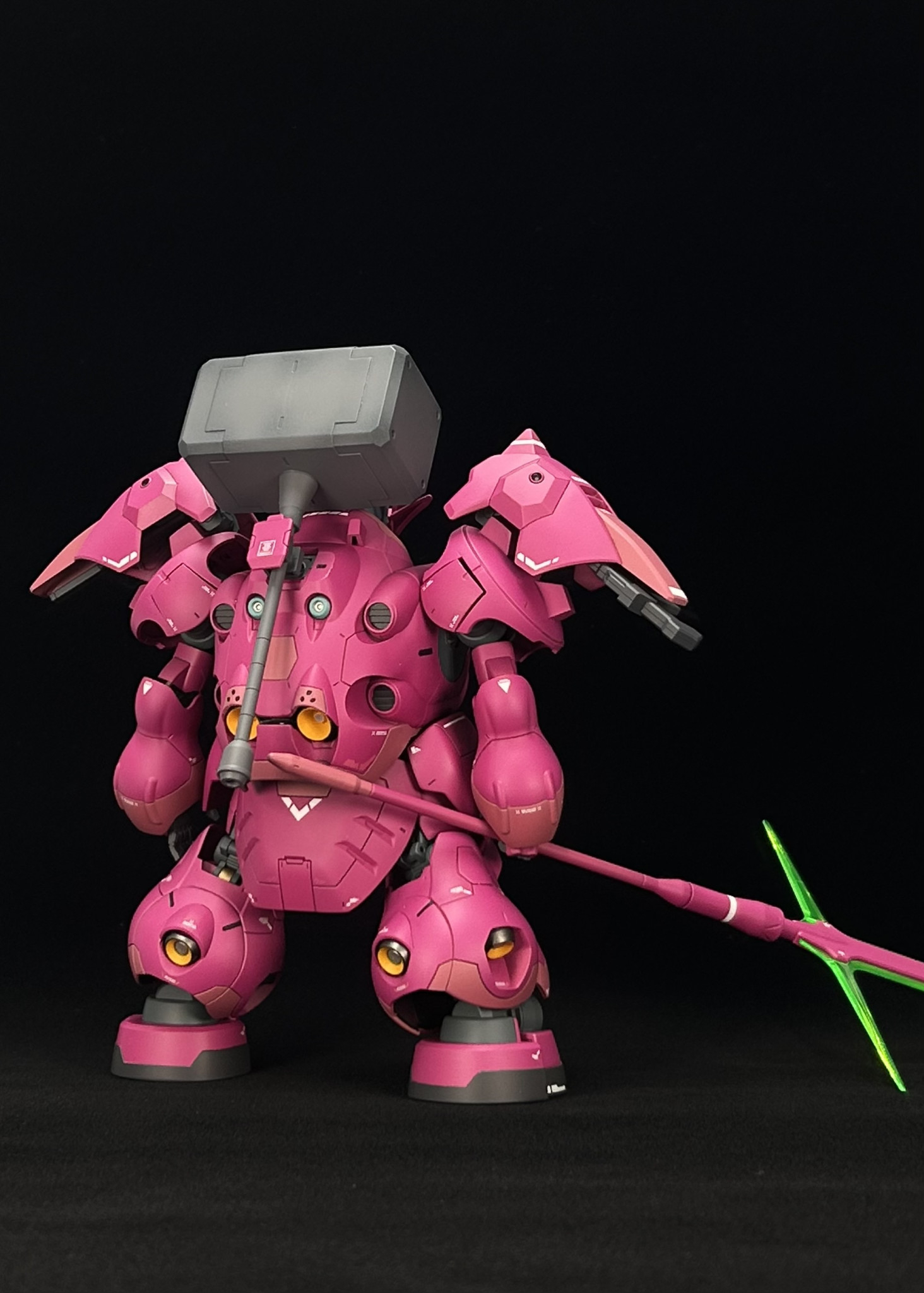 バーニアはイエローで塗りアクセントをつけました。グシオンハンマーは製作中に落とした際にグリップが折れたので修正してます。