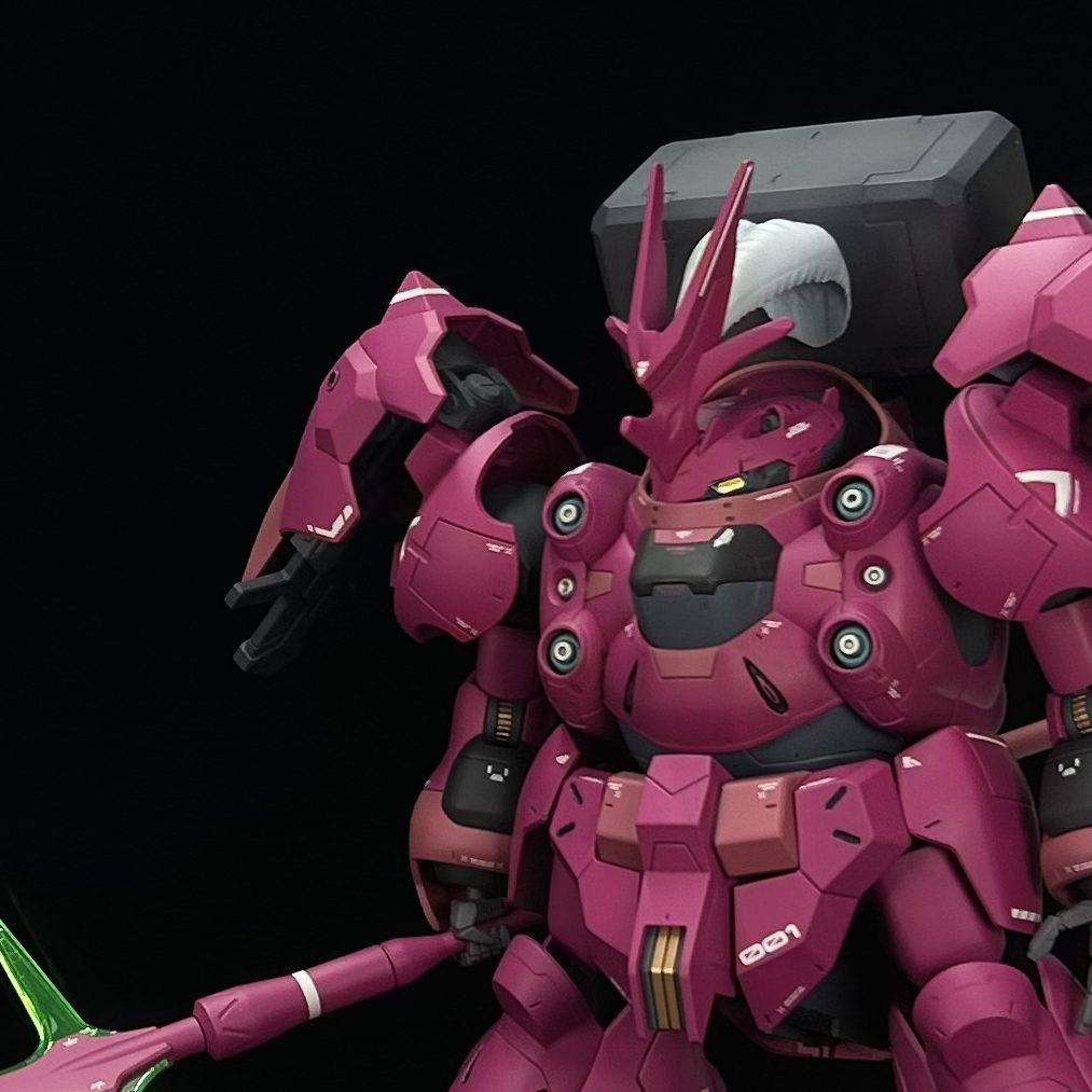 グシオンの肩アーマーの合わせ目消しとアンテナのセンター出しに少し苦労しましたが、満足いく仕上がりに満足しています。
